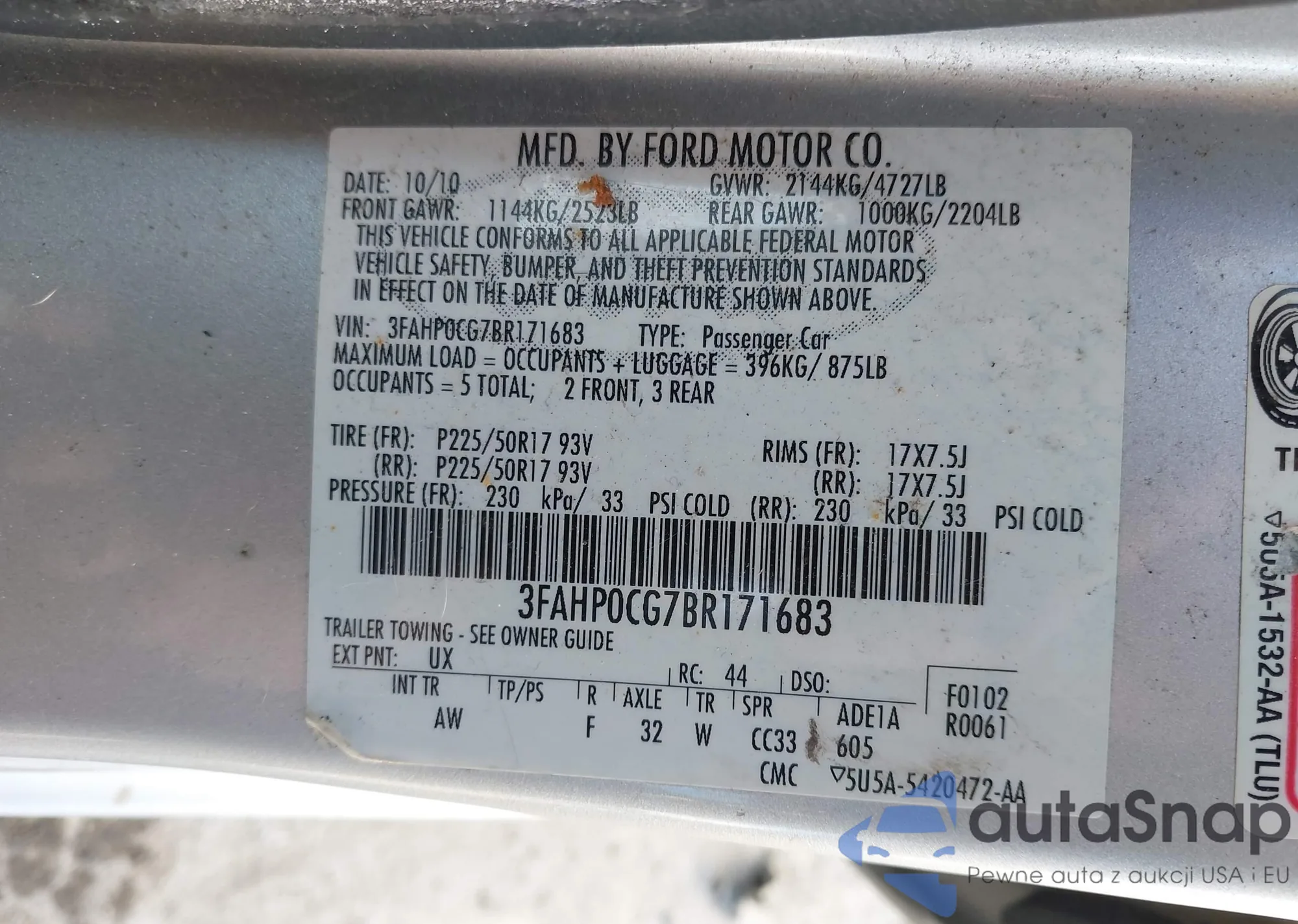 • VIN 3FAHP0CG7BR171683
