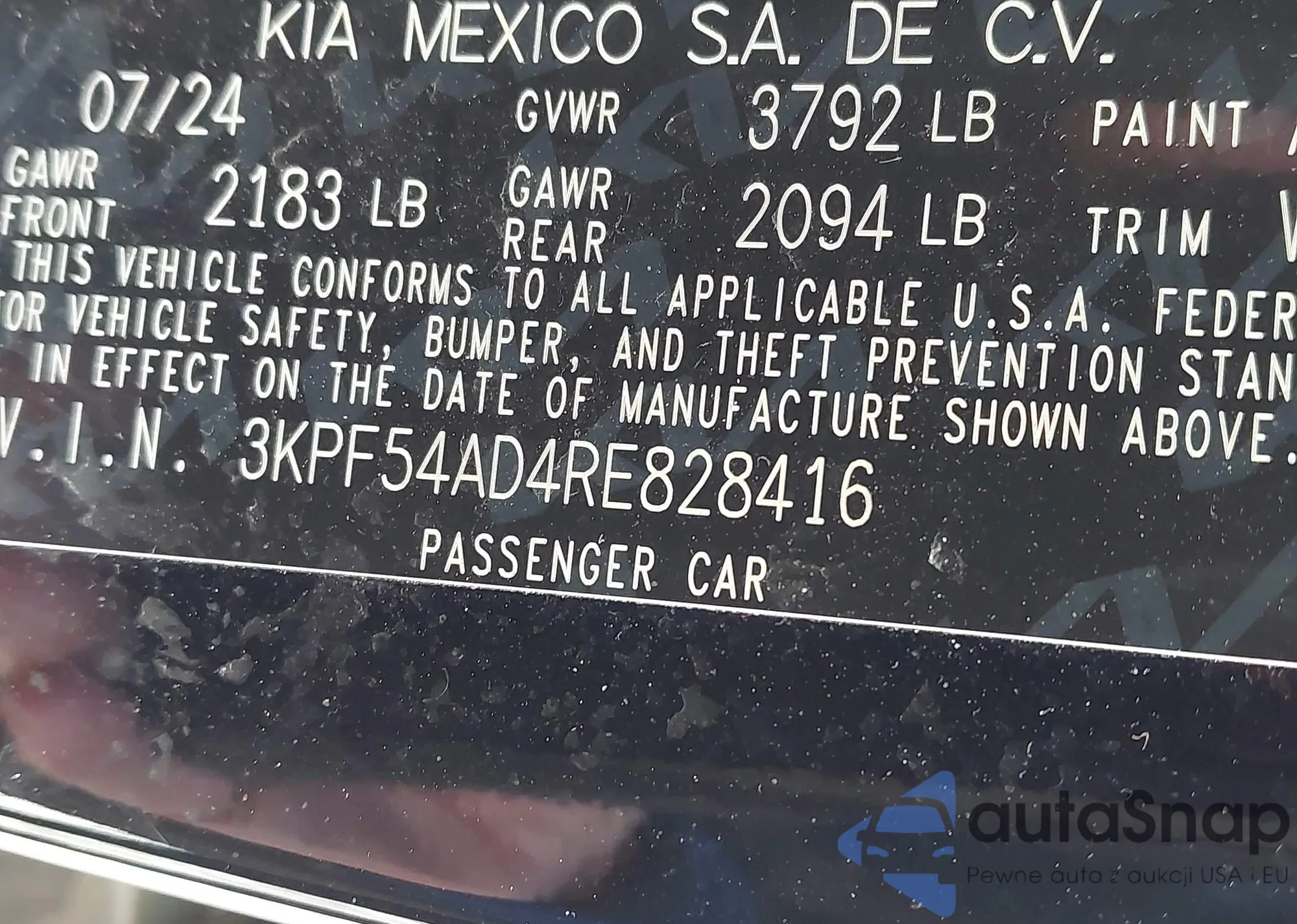 LOT: 43945156 VIN: 4T1DAACK0SU201163