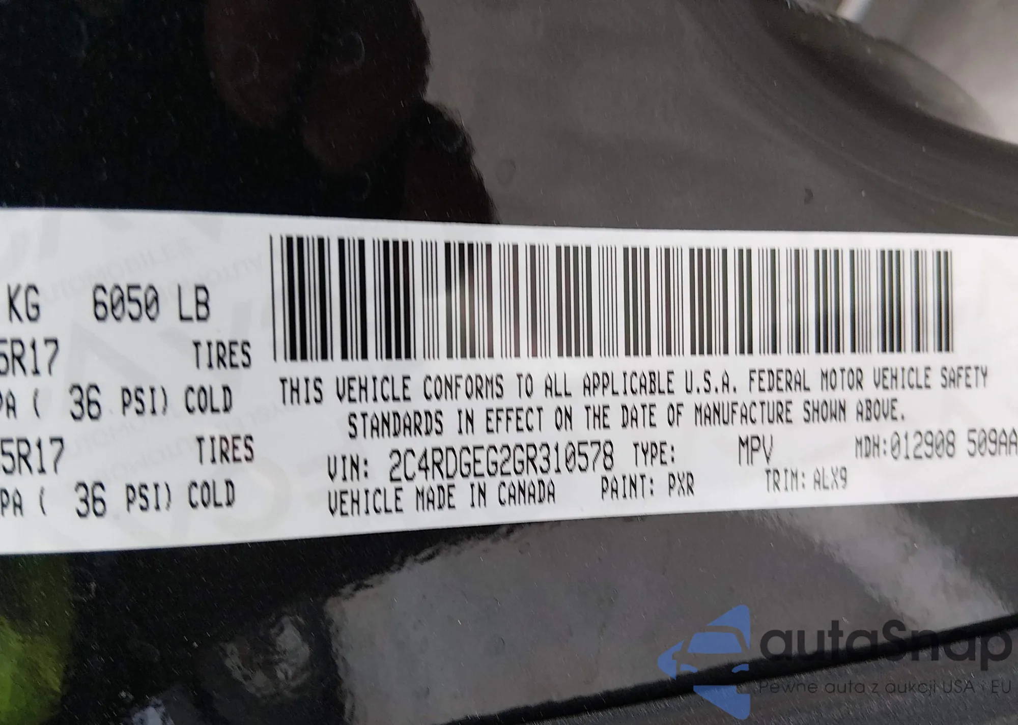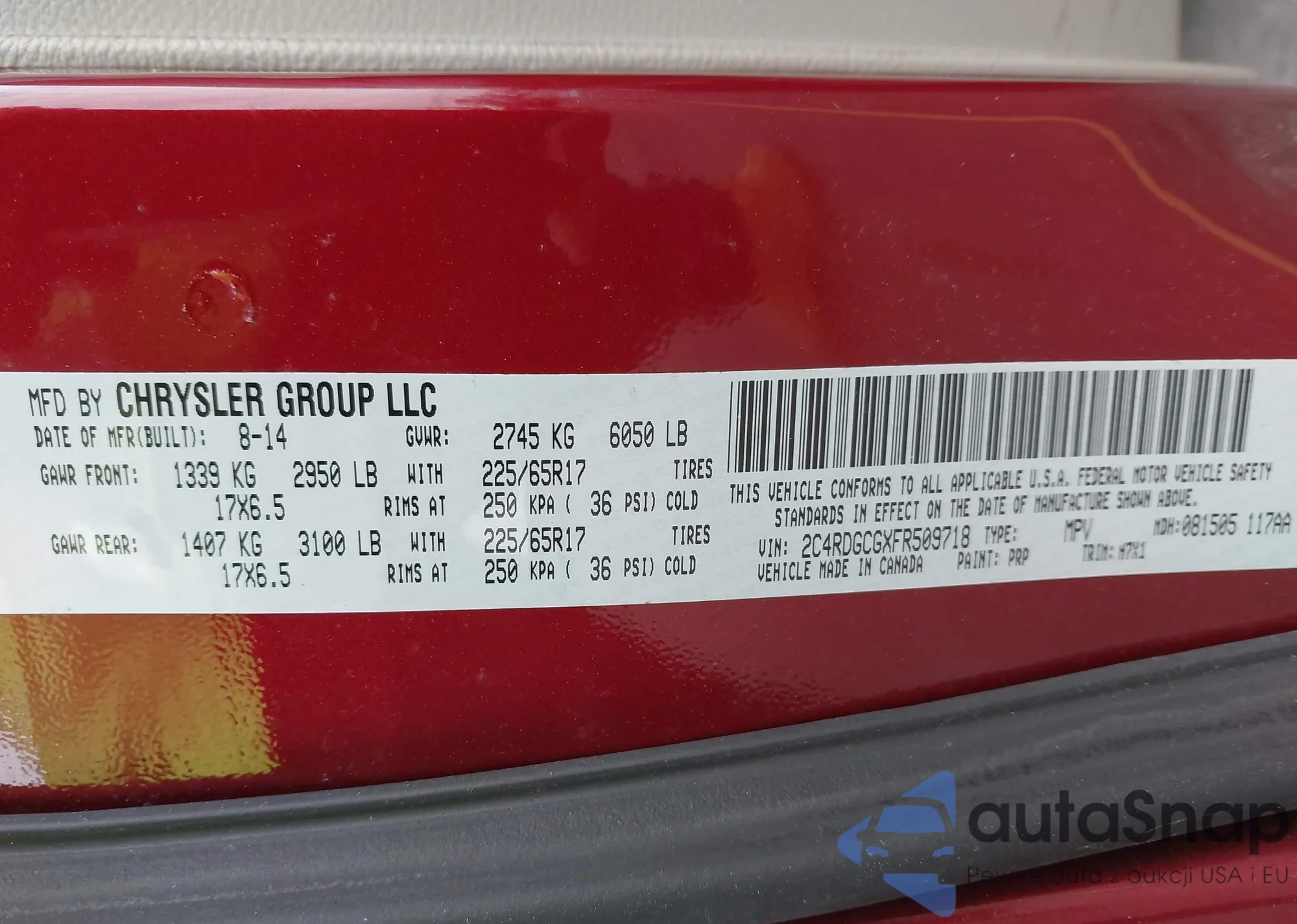 • VIN 2C4RDGCGXFR509718