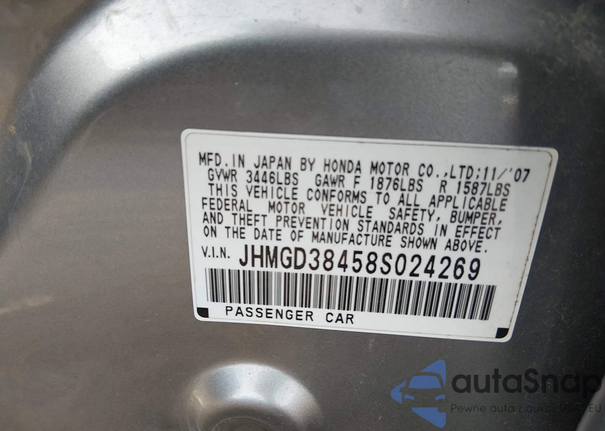 • VIN JHMGD38458S024269