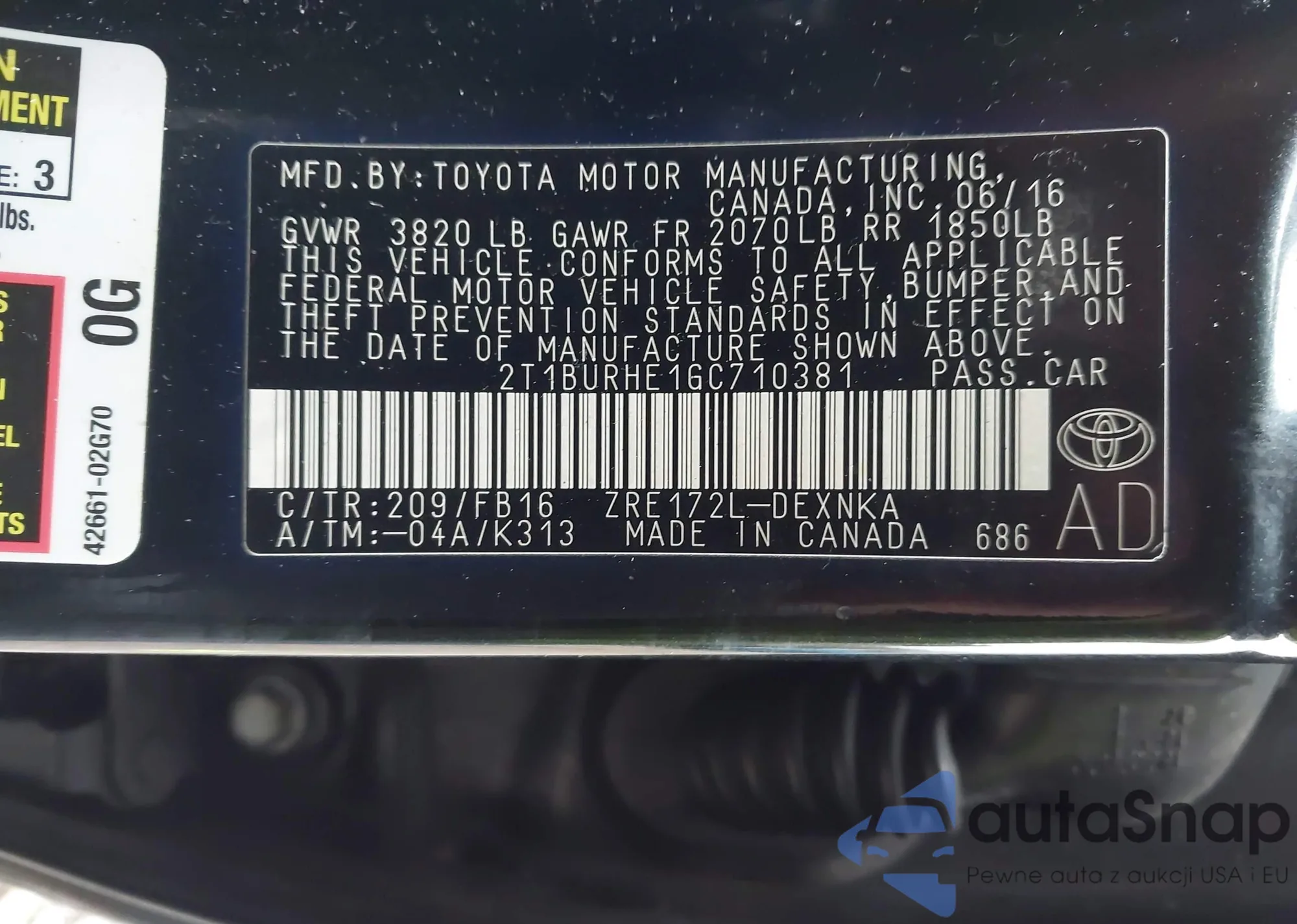 • VIN 4T1BF1FK1GU514153