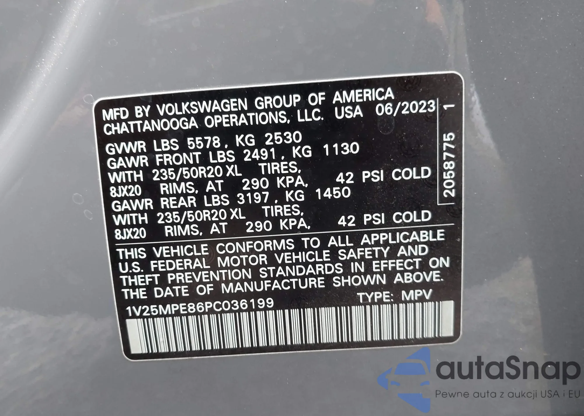 LOT: 43907270 VIN: 1V25MPE86PC036199
