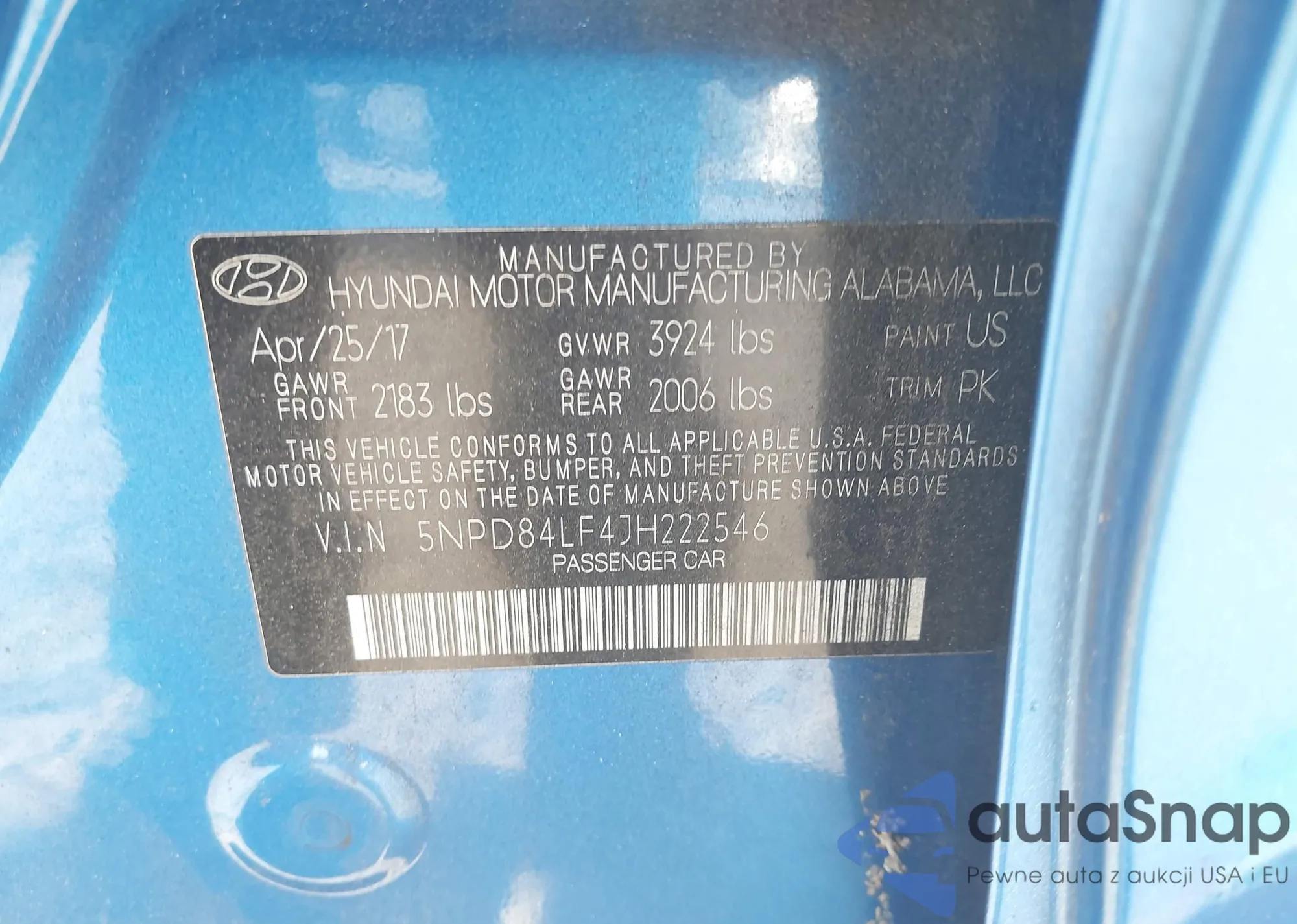 • VIN 5NPE34AF4HH446416