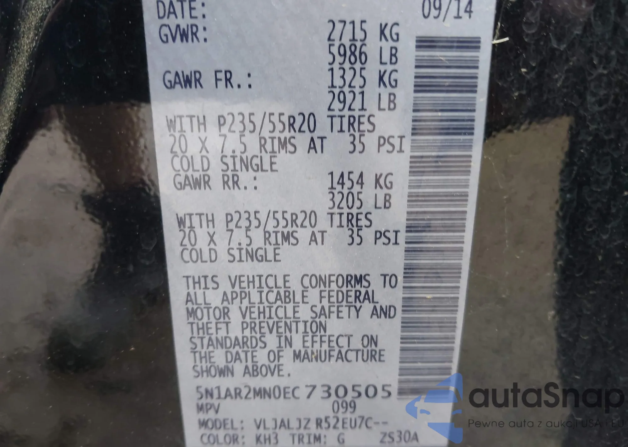 LOT: 44332456 VIN: 5N1AR2MN0EC730505