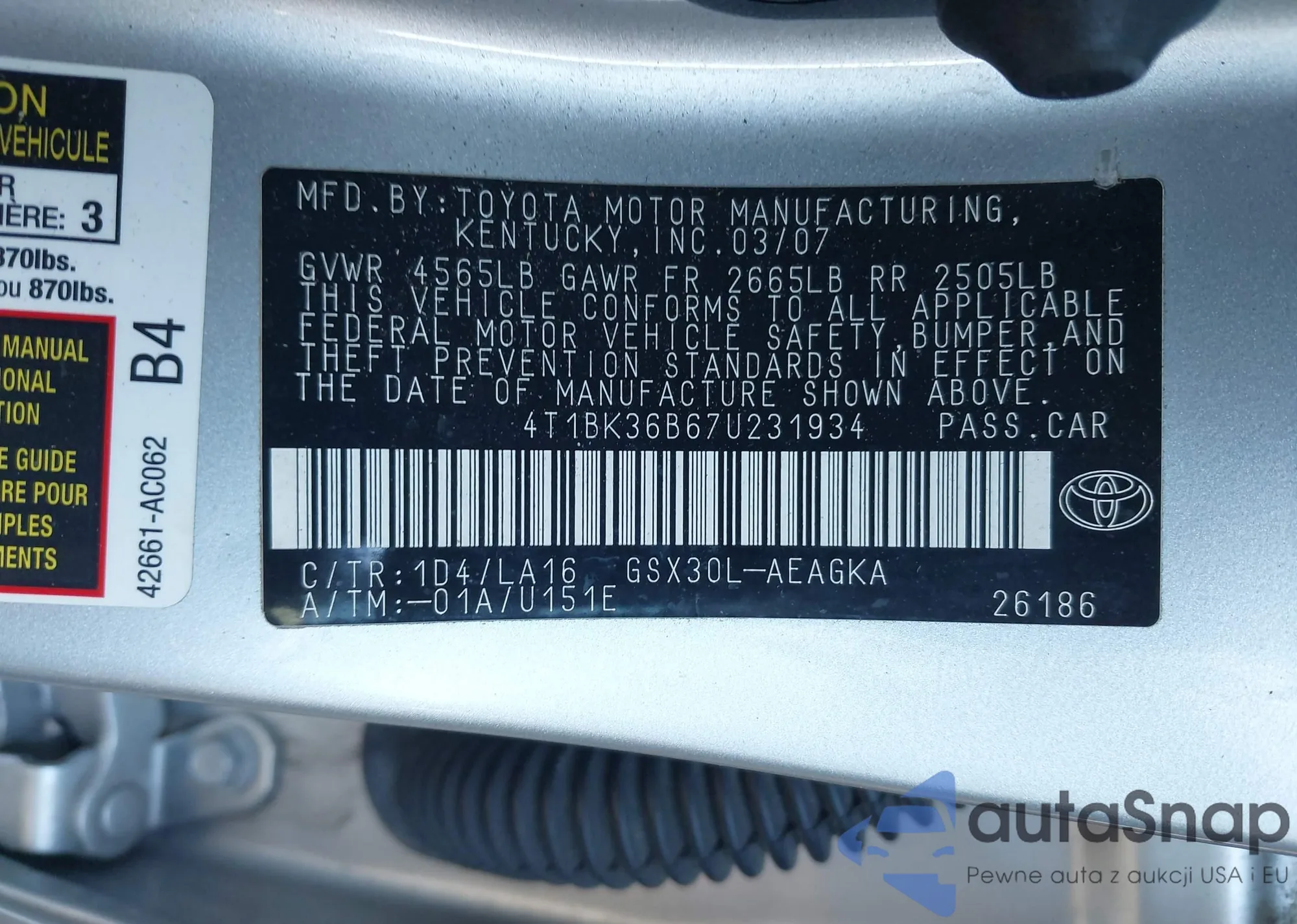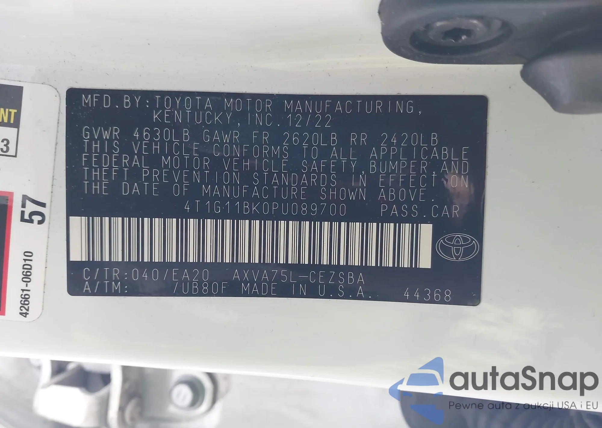 LOT: 43907122 VIN: 4T1G11BK0PU089700