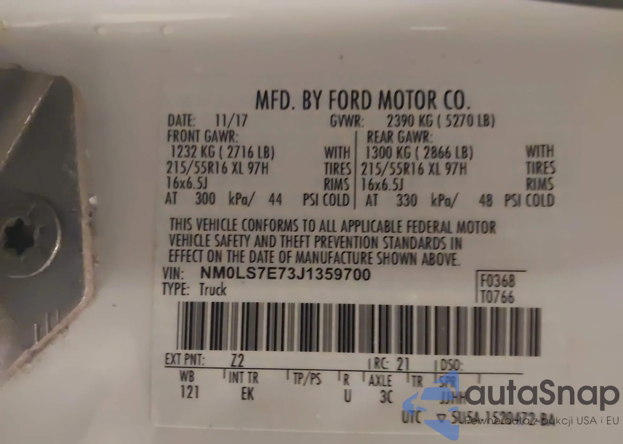 LOT: 44307563 VIN: NM0LS7E73J1359700