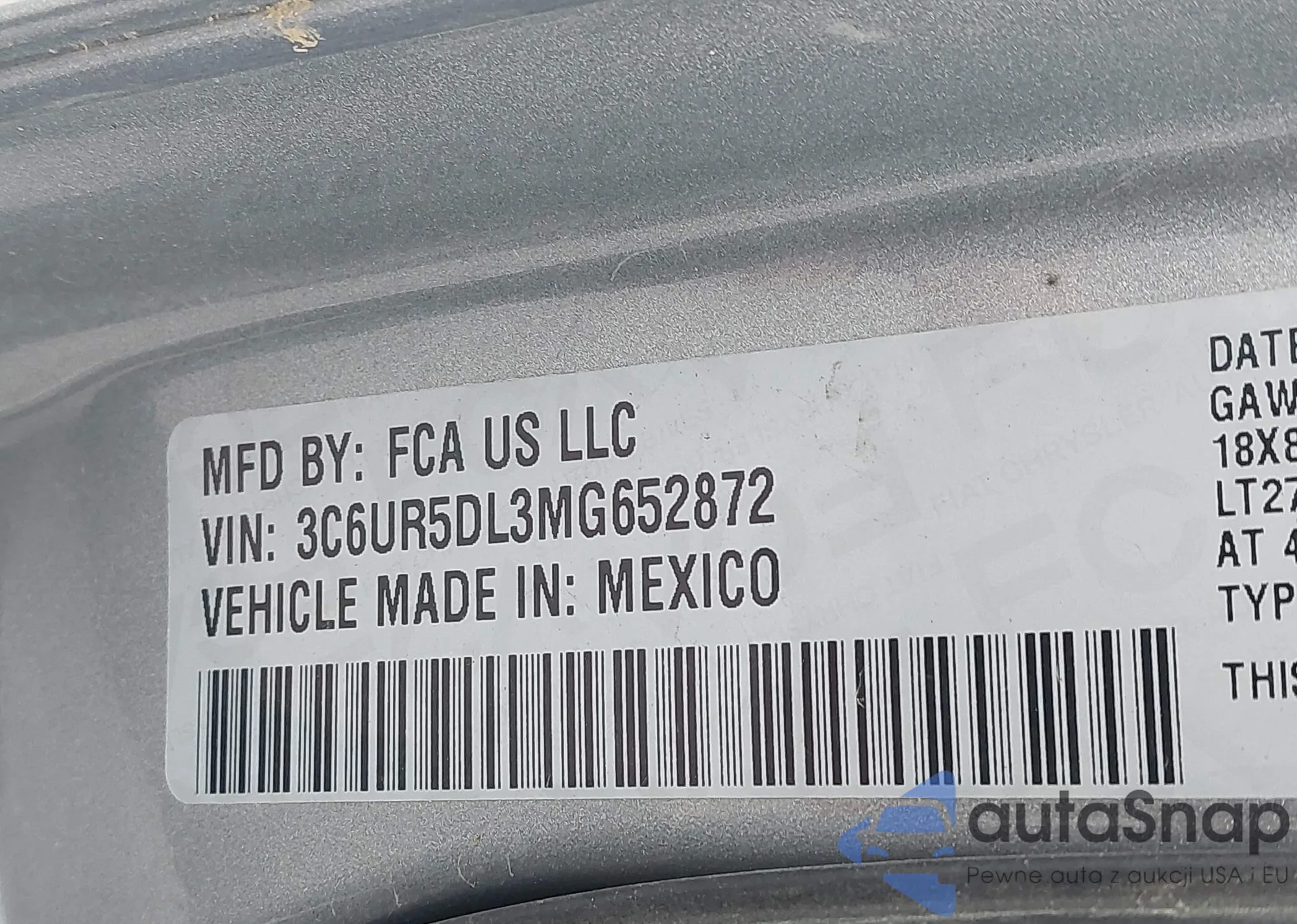 • VIN 3C6UR5DL3MG652872