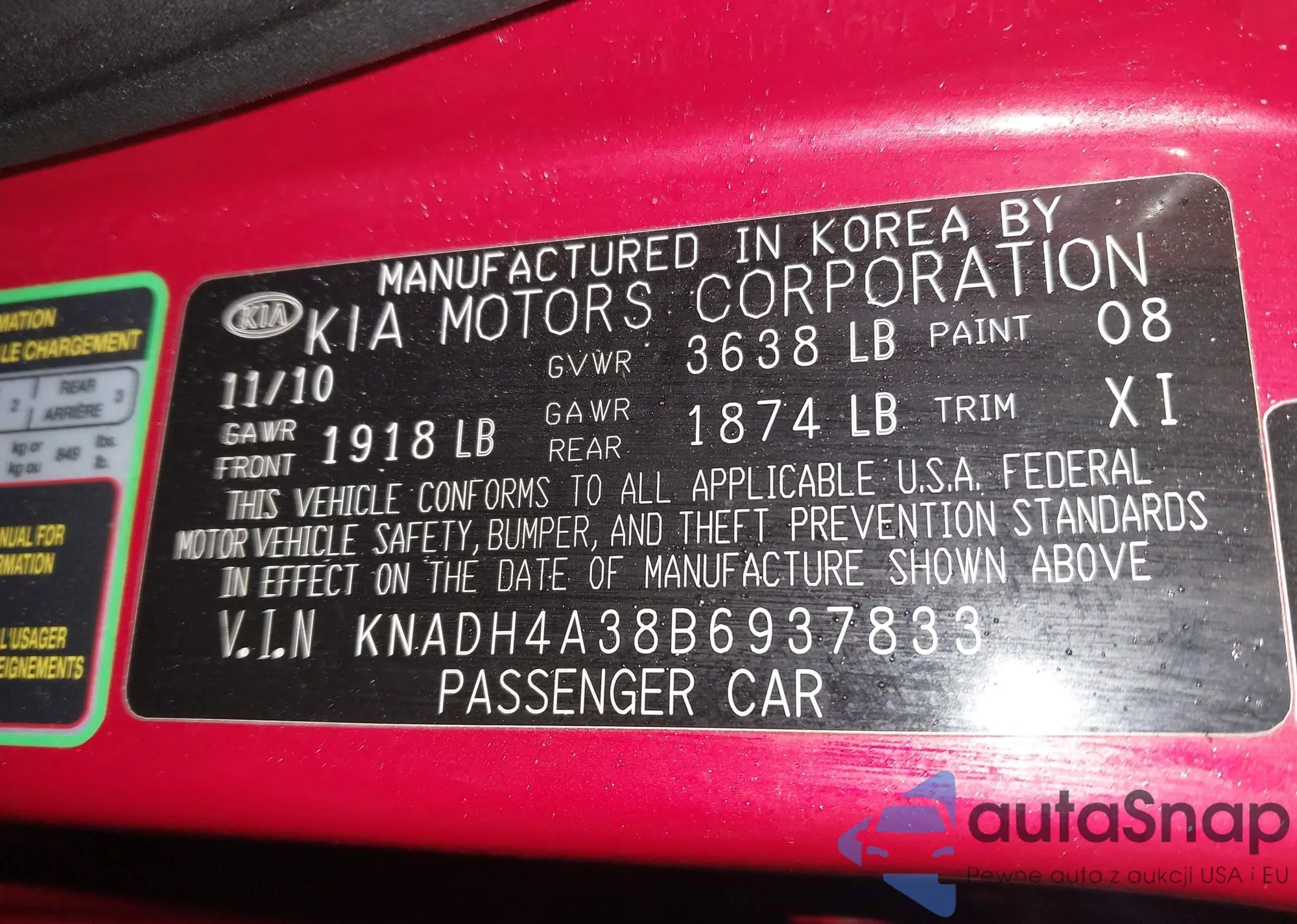 • VIN KNADH4A38B6937833
