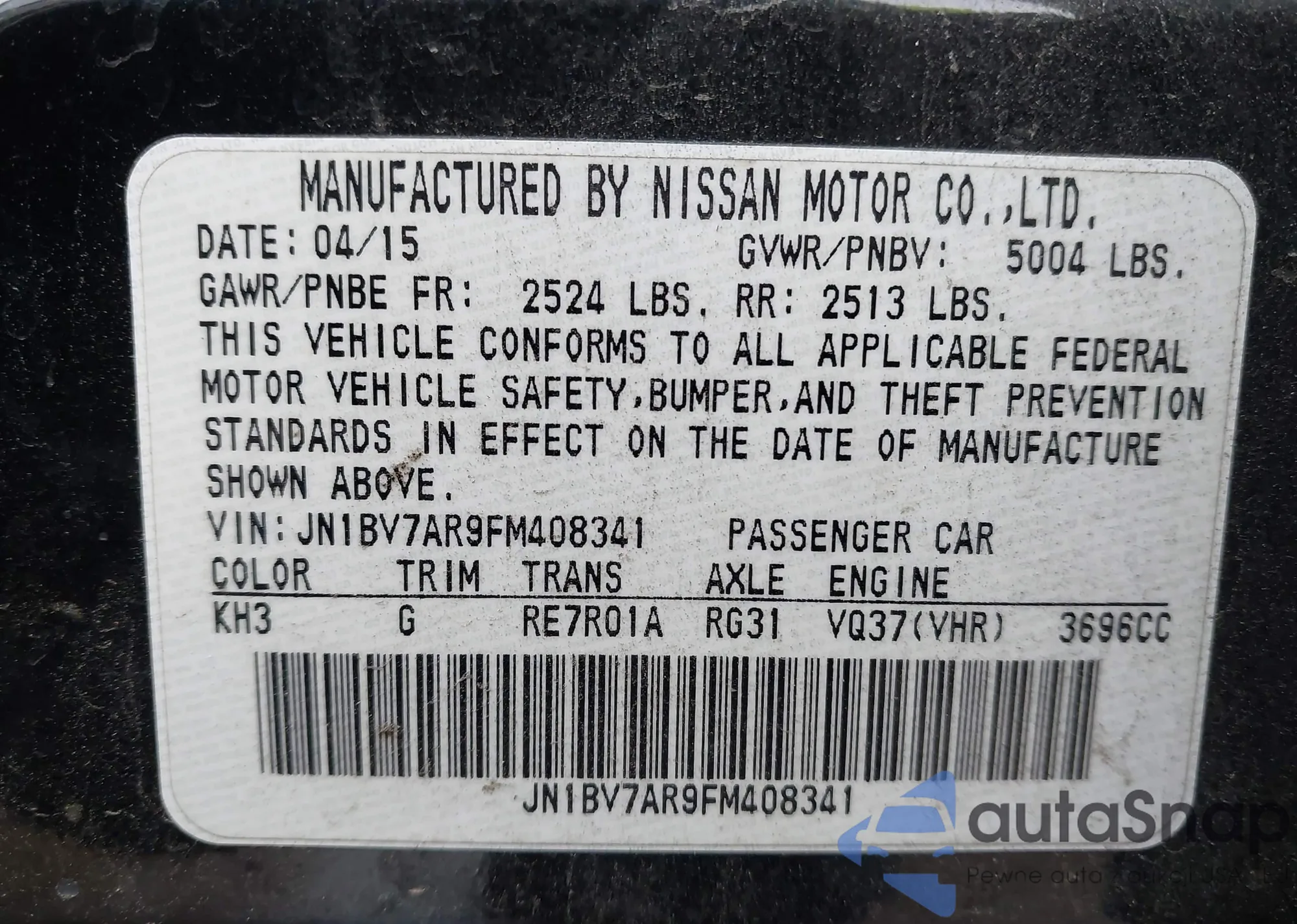 LOT: 44036483 VIN: JN1BV7AR9FM408341