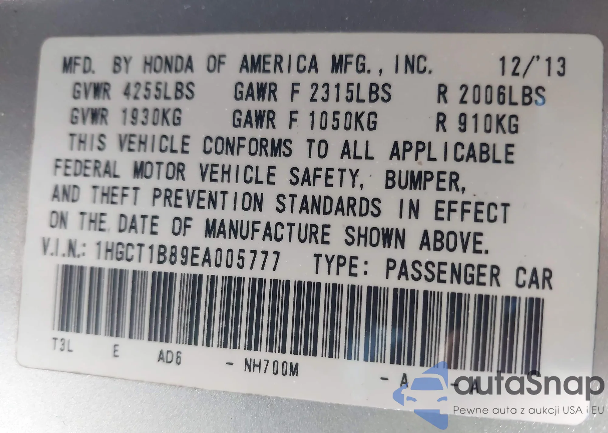 LOT: 44014231 VIN: KNADH4A38B6937833
