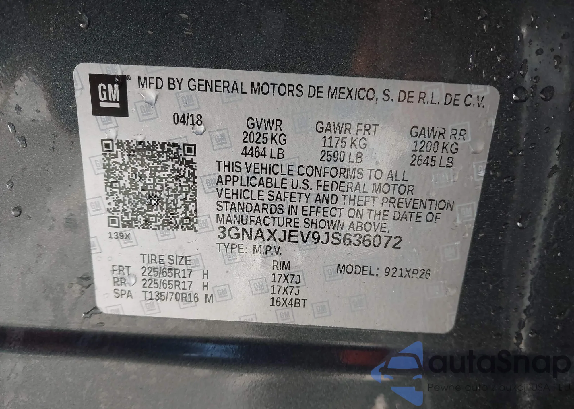 LOT: 44282862 VIN: 5J6RM3H7XCL041862