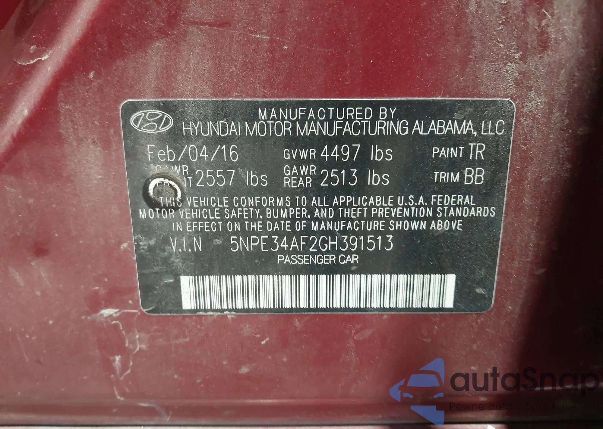• VIN 5NPE34AF2GH391513