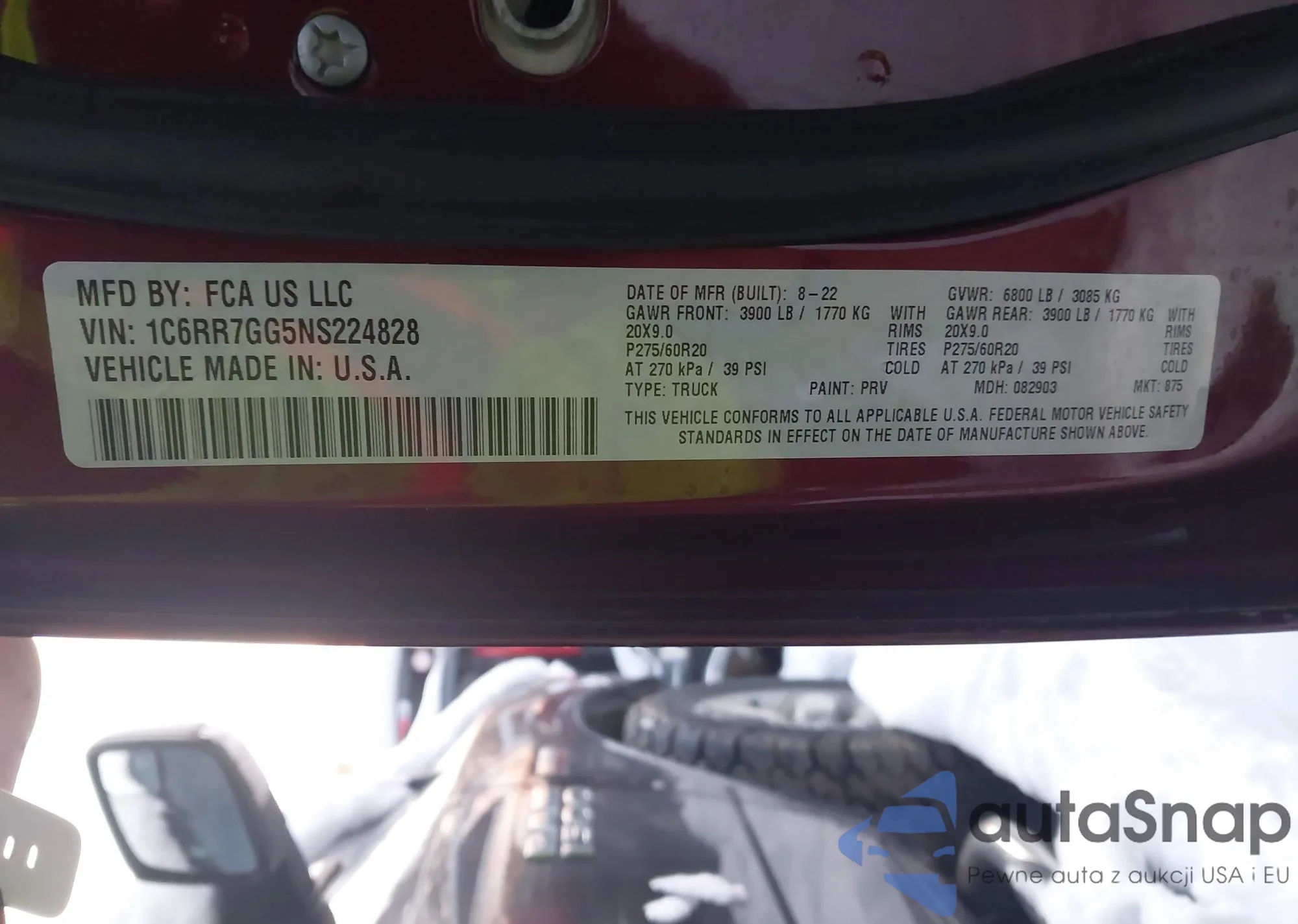 • VIN 1C6RR7GG5NS224828