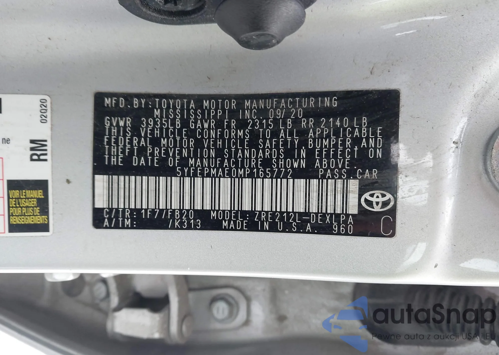 LOT: 44148430 VIN: 5YFEPMAE0MP165772
