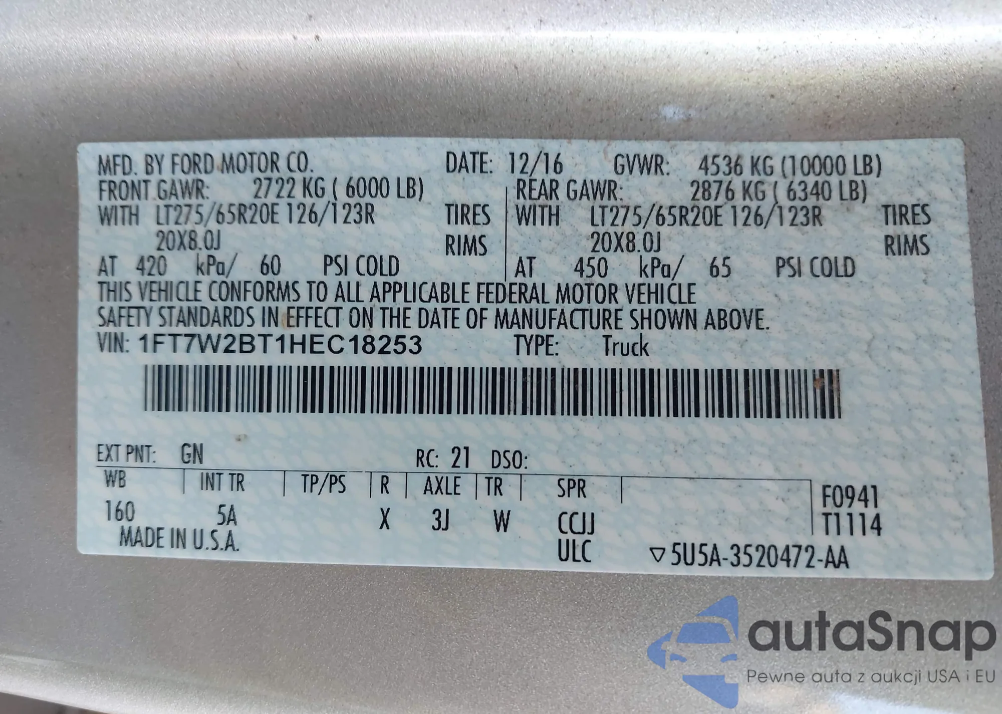 • VIN 2C3CDXCT5GH355112