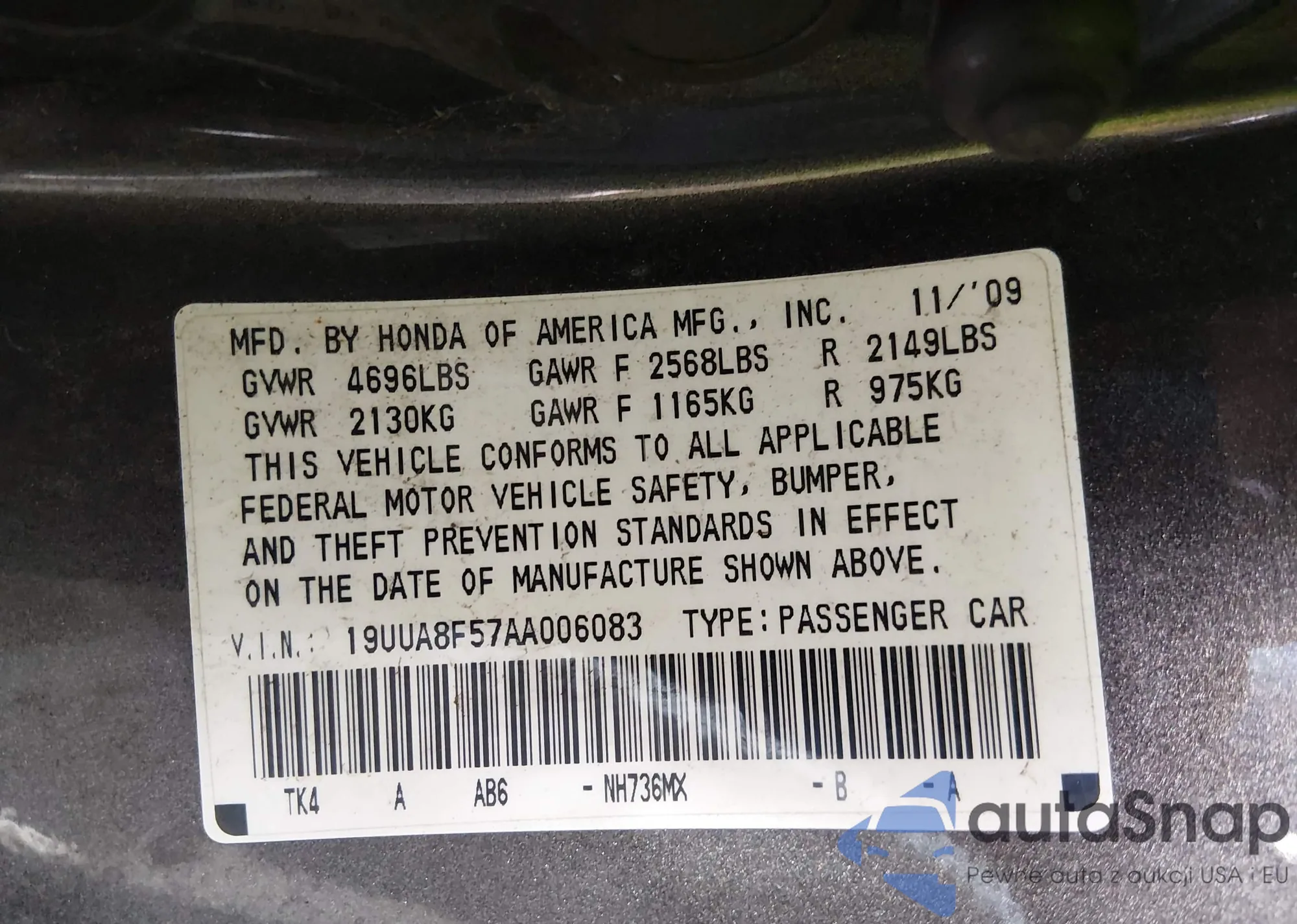 LOT: 43948597 VIN: 2HNYD2H32CH544768