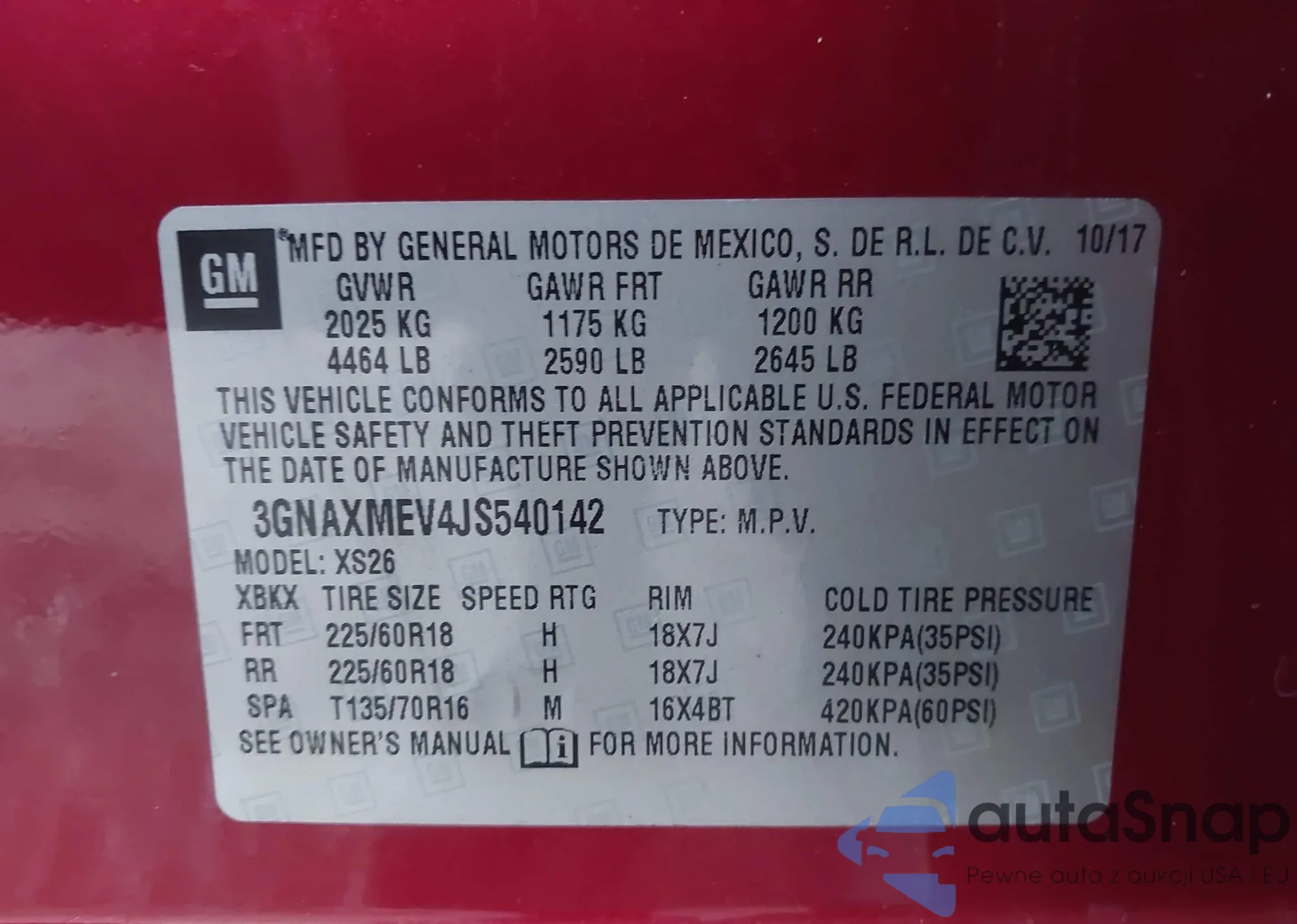 • VIN 3GNAXMEV4JS540142