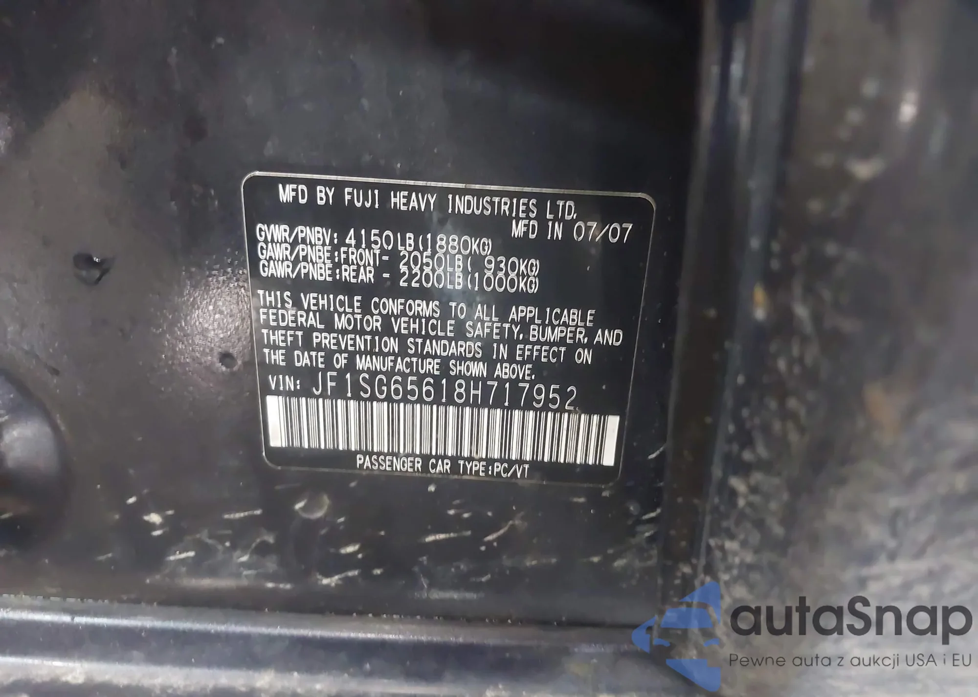 • VIN JF1SG65618H717952