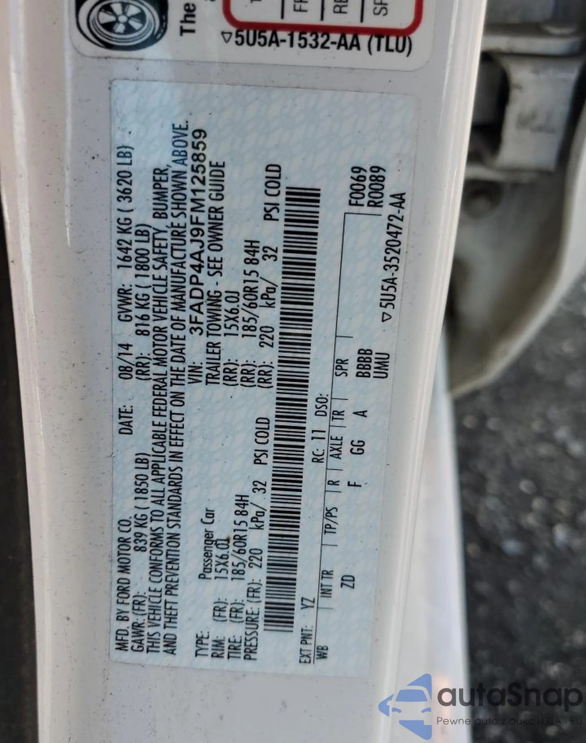 • VIN 3FADP4AJ9FM125859