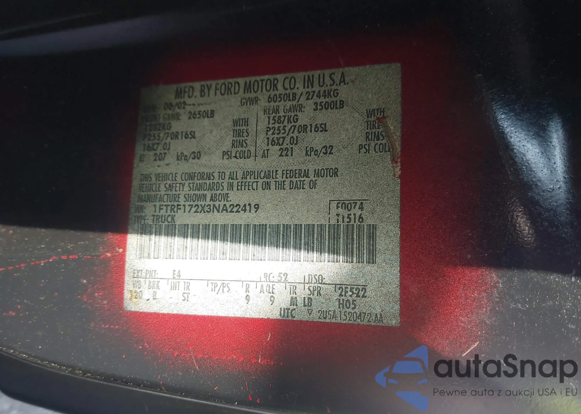 • VIN 1FTRF172X3NA22419
