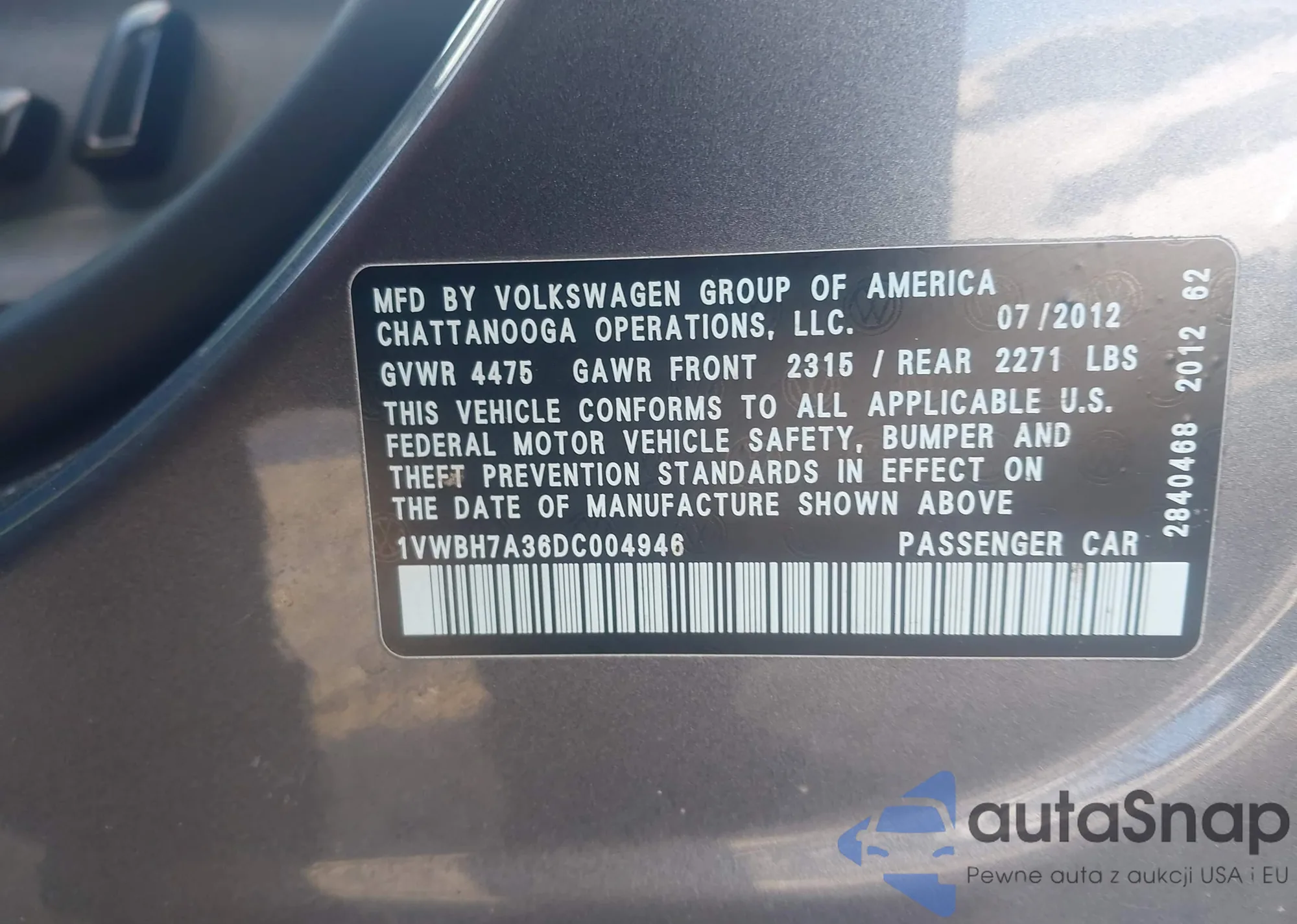• VIN 1VWBH7A36DC004946