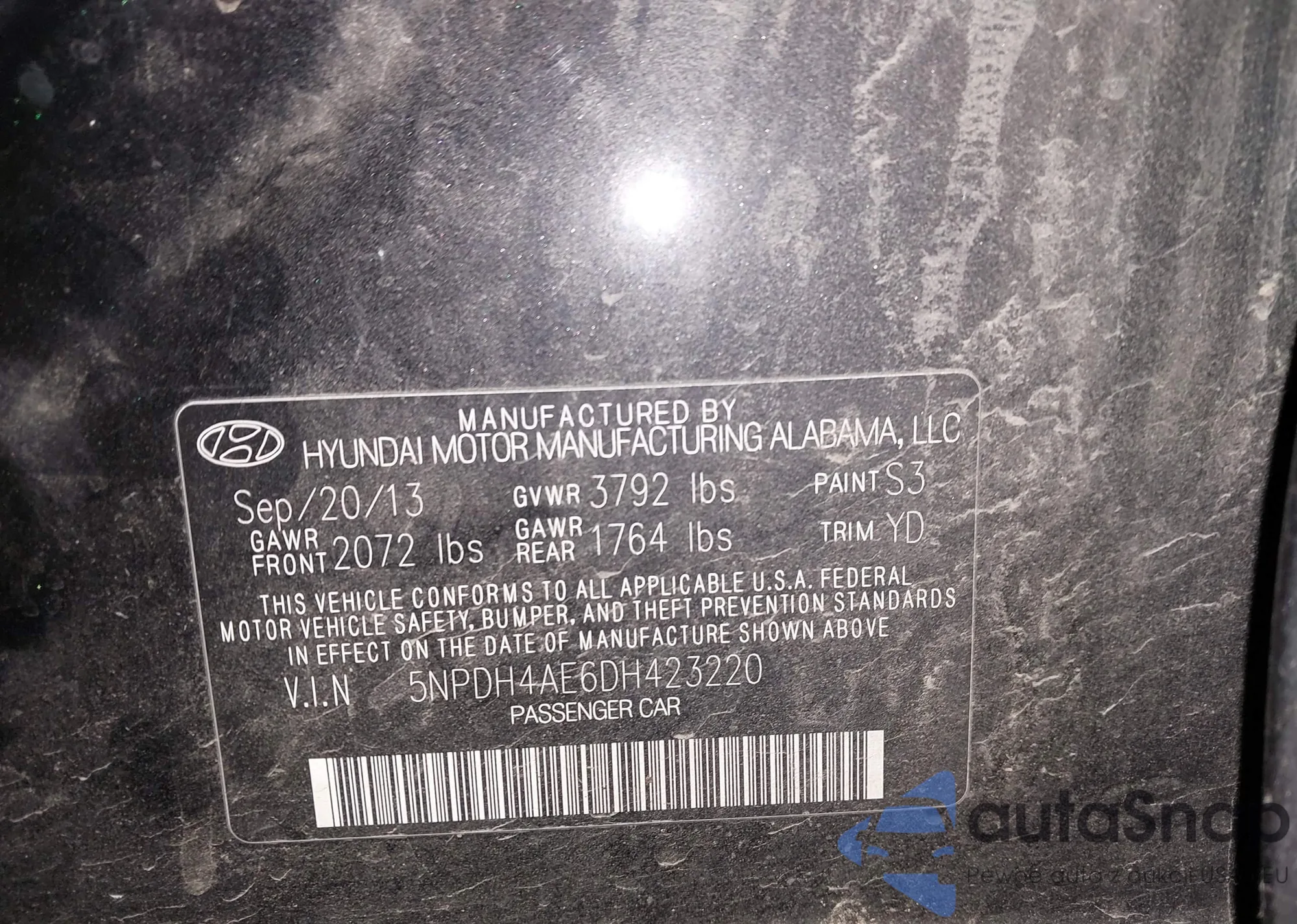 • VIN 5NPE34AF6FH070296