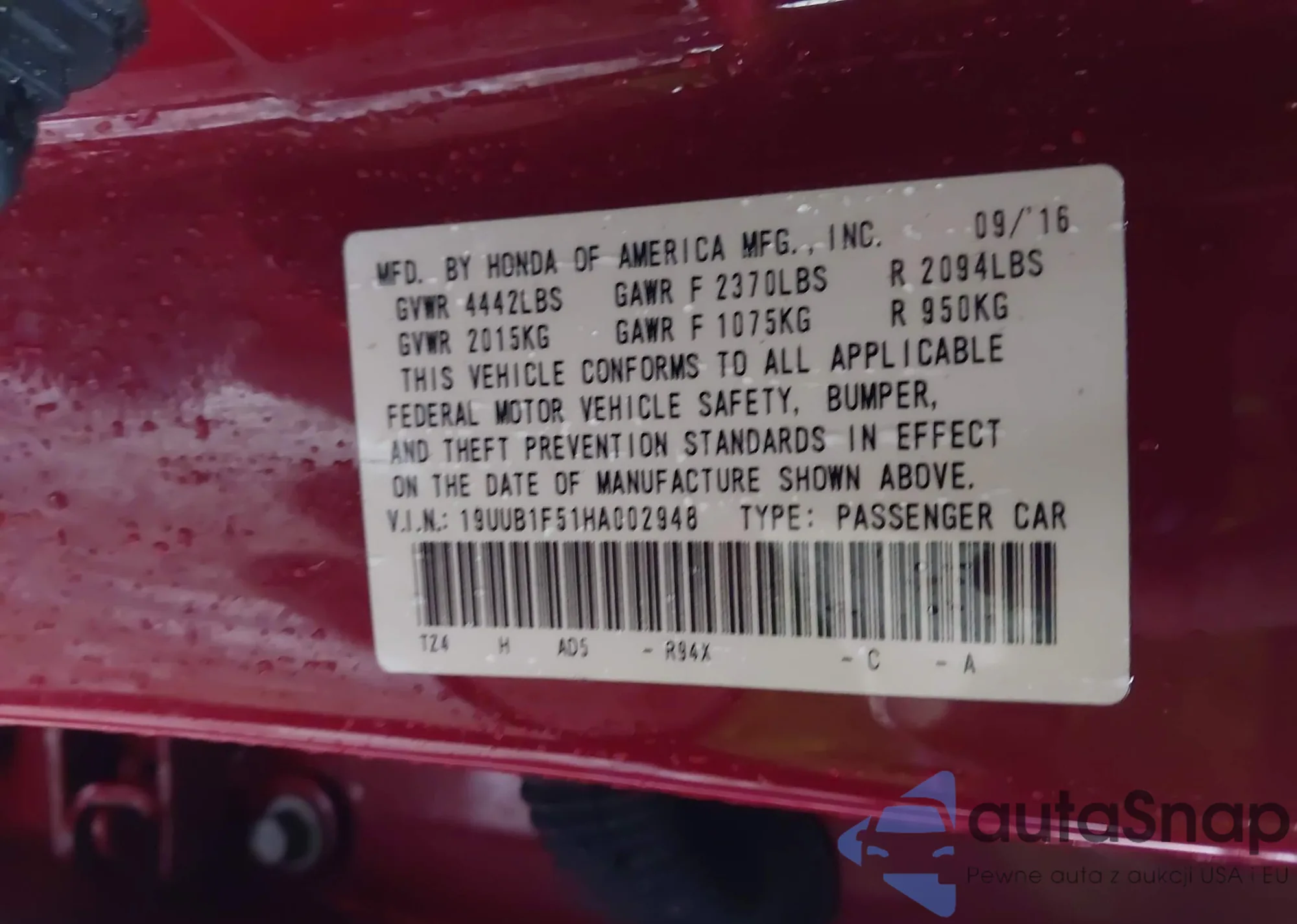 LOT: 43761671 VIN: 19UUB1F51HA002948
