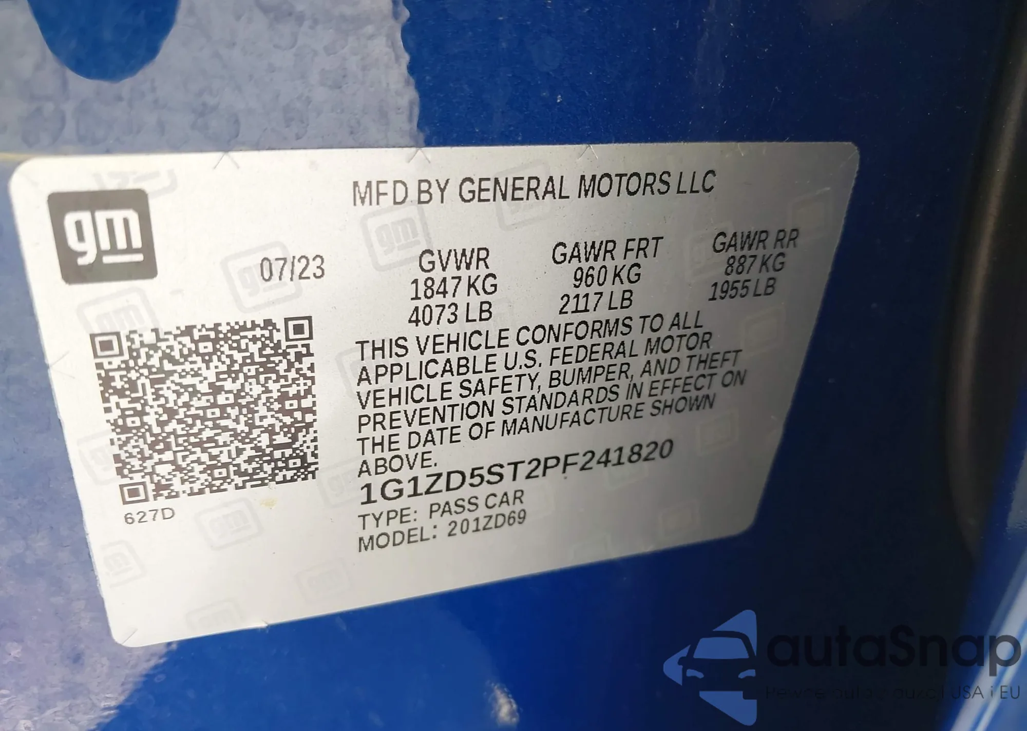 • VIN 1G1ZD5ST2PF241820