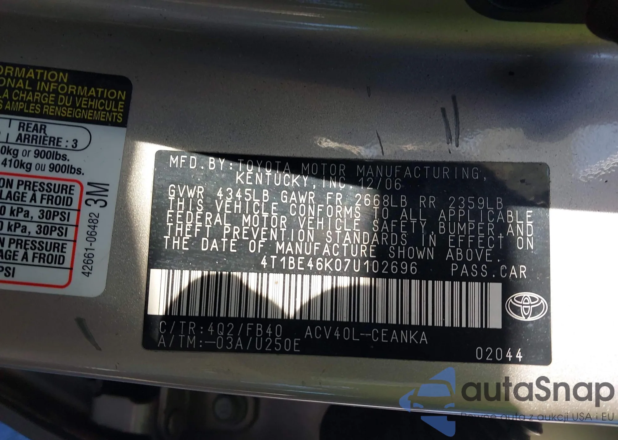• VIN 4T1C11BK4LU010702