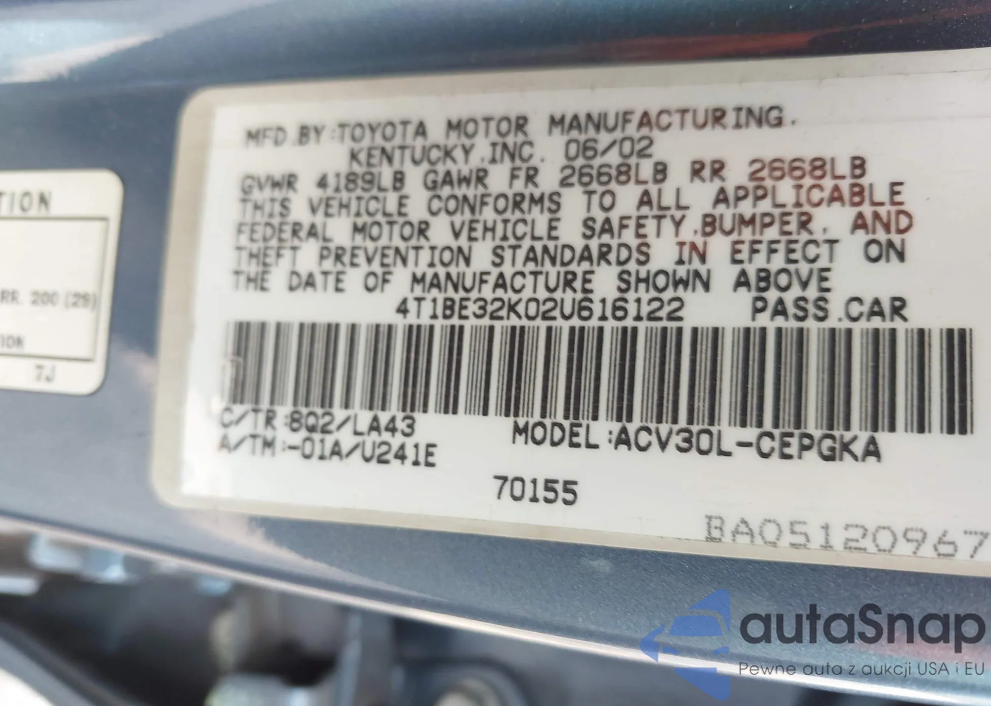 • VIN 4T1BE32K02U616122