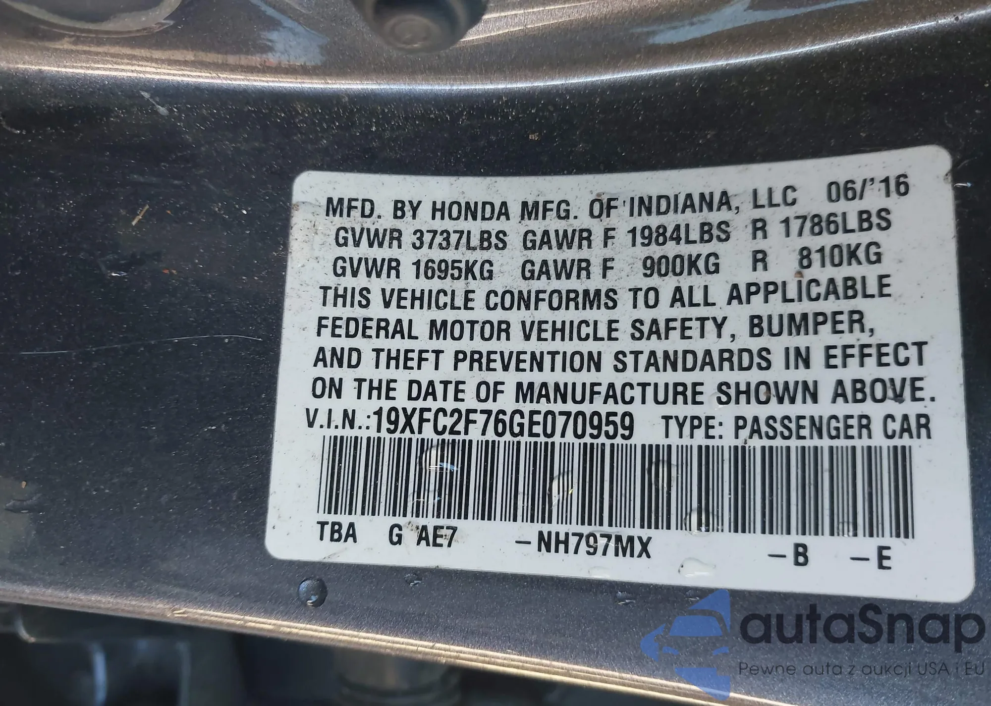 LOT: 43815233 VIN: 19XFC2F76GE070959