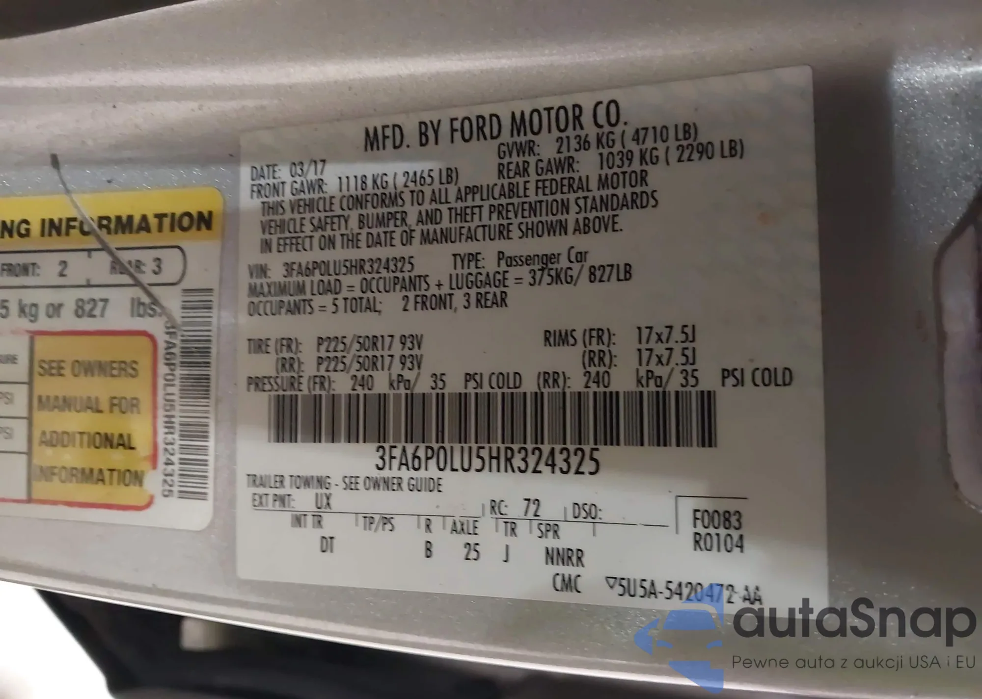 • VIN 3FA6P0LU5HR324325