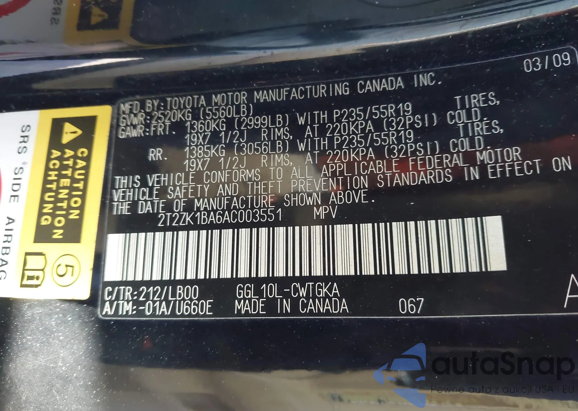 LOT: 44279771 VIN: 5TDZK22C48S219931