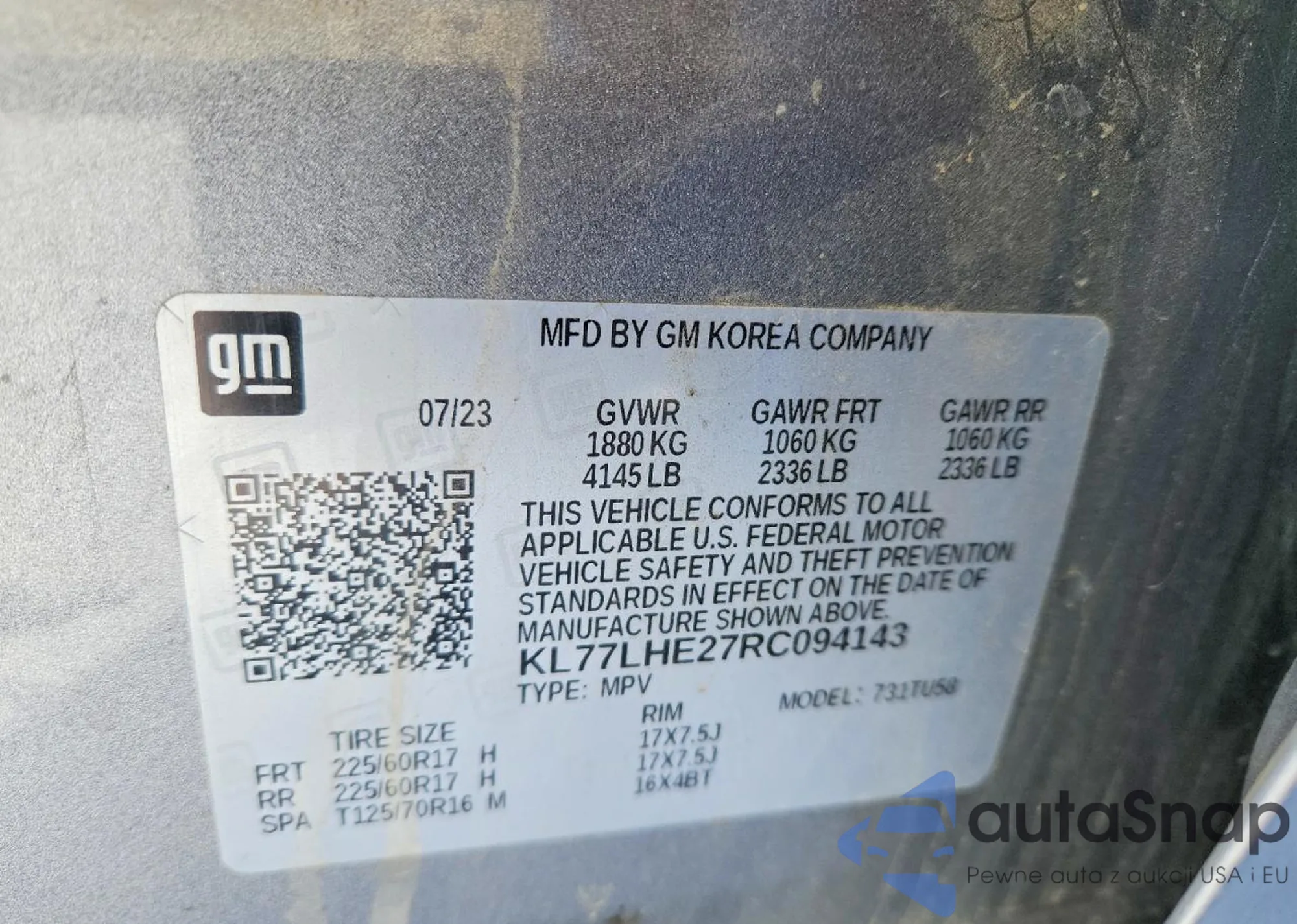 • VIN KL77LHE27RC094143