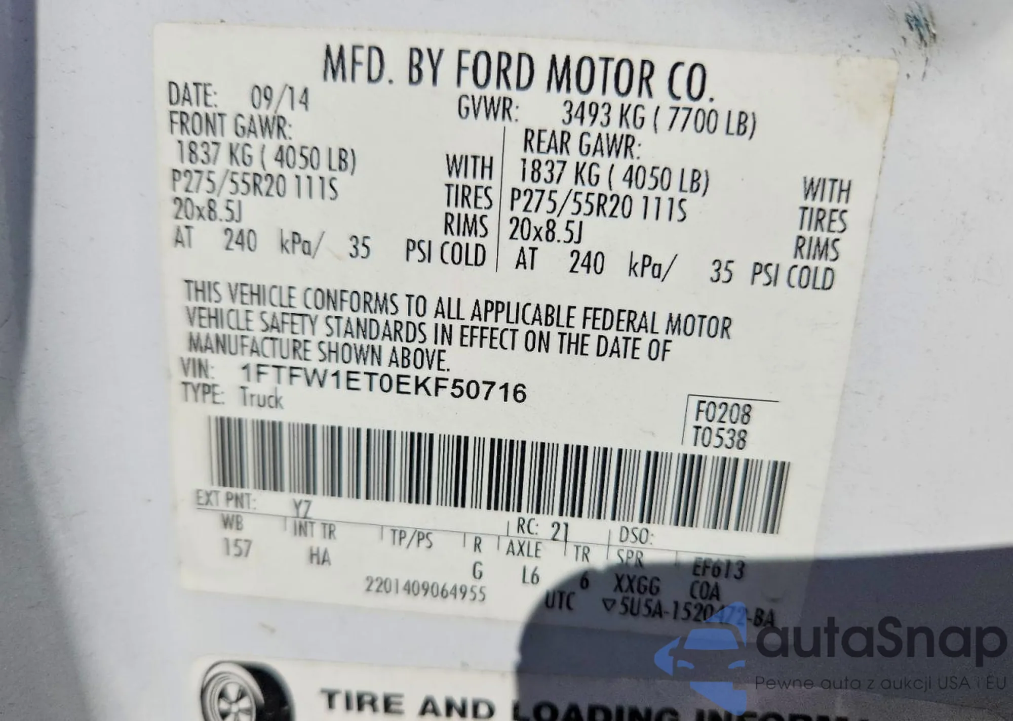 • VIN 1FTFW1ET0EKF50716
