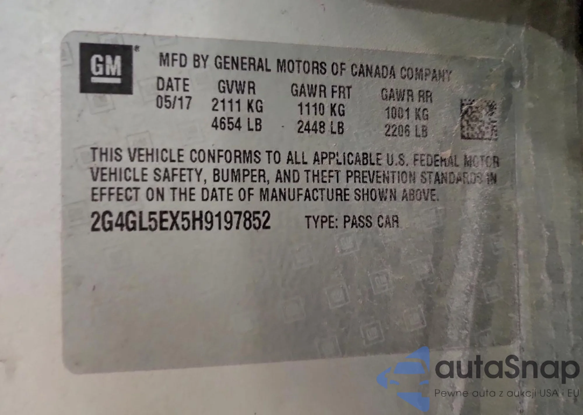 • VIN 2G4GL5EX5H9197852