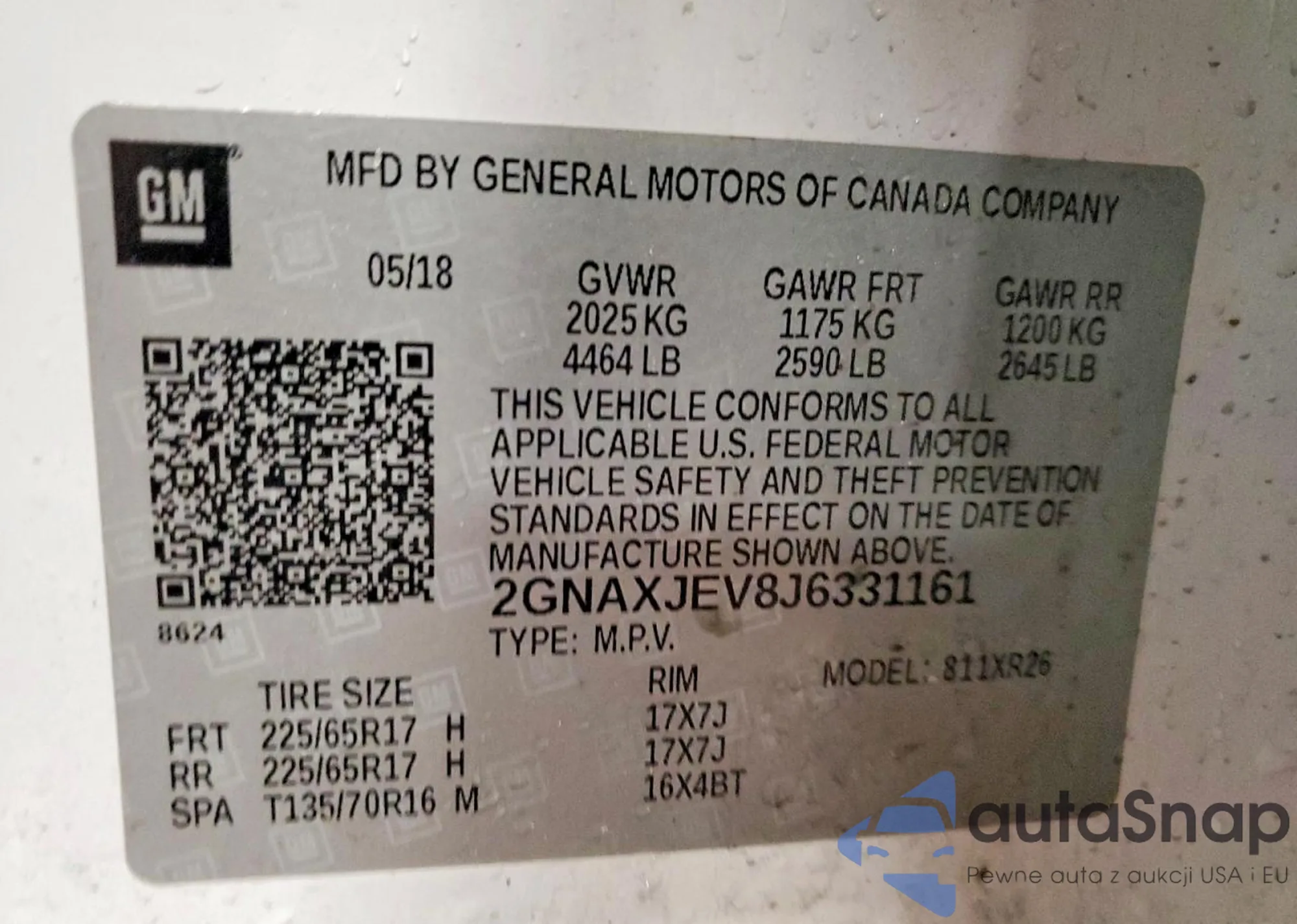 • VIN 2GNAXJEV8J6331161