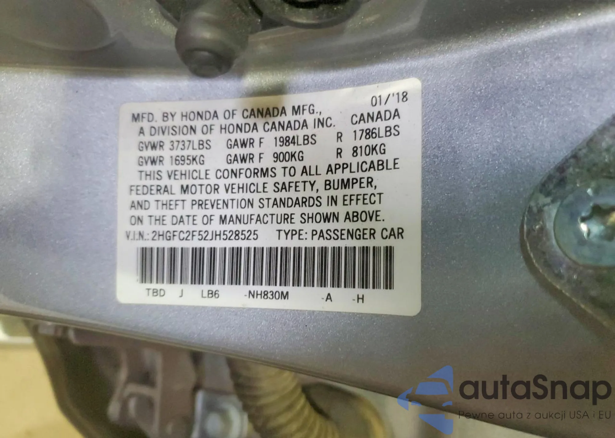 • VIN 2HGFC2F52JH528525