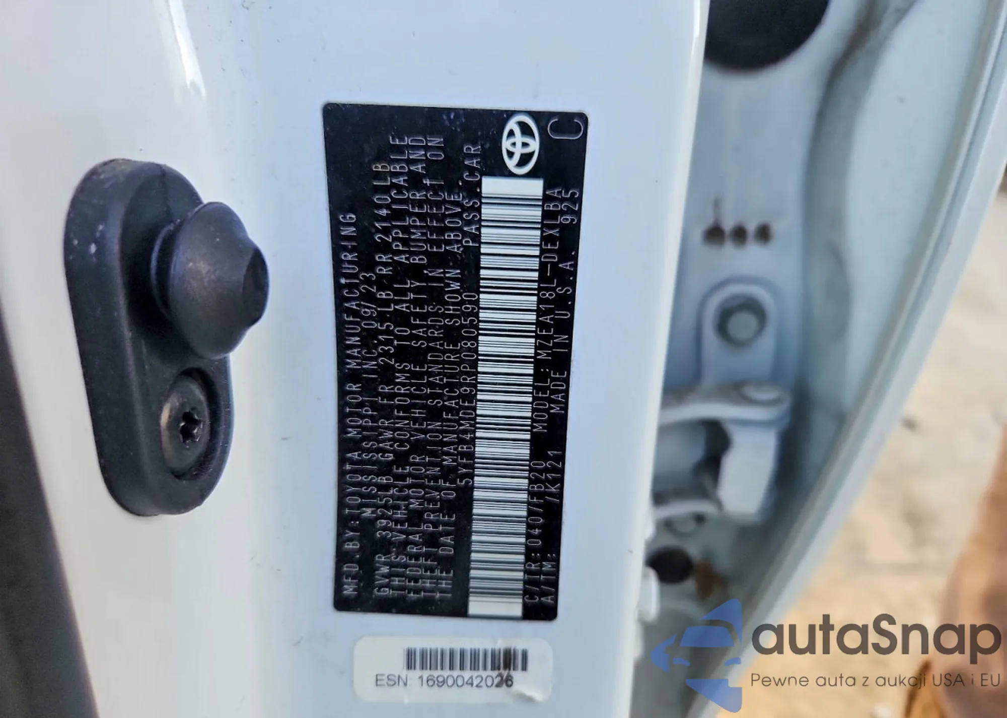 • VIN 5YFB4MDE9RP080590