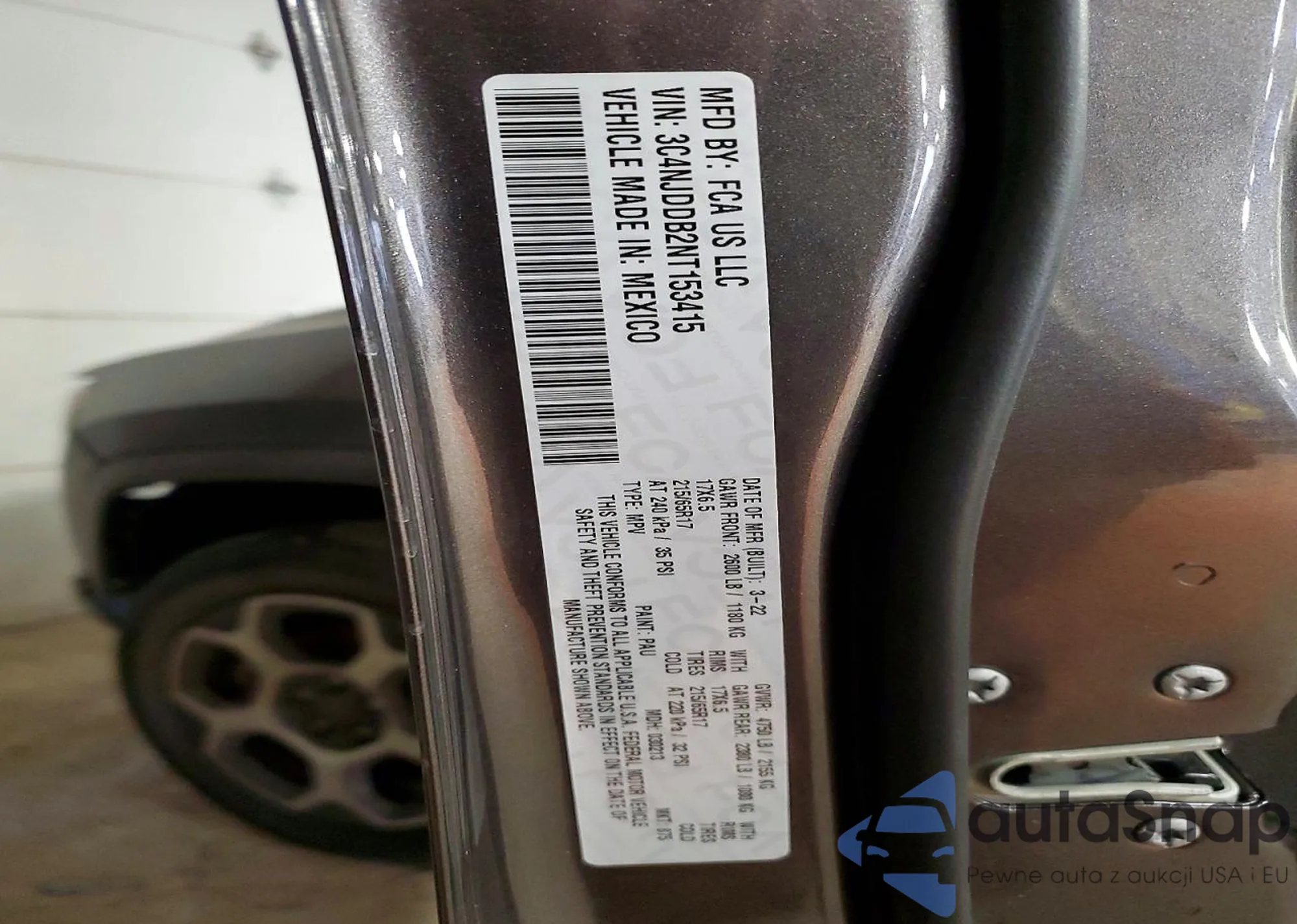 • VIN 3C4NJDDB2NT153415