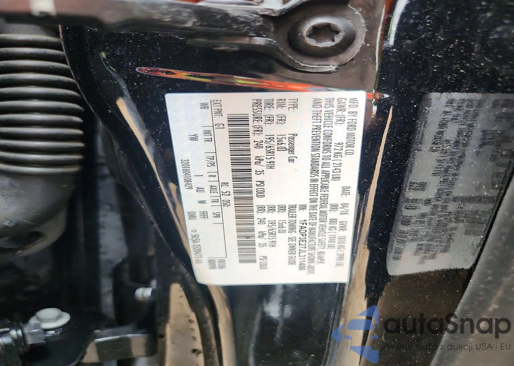 LOT: 97673835 VIN: 1FADP3E27JL311486