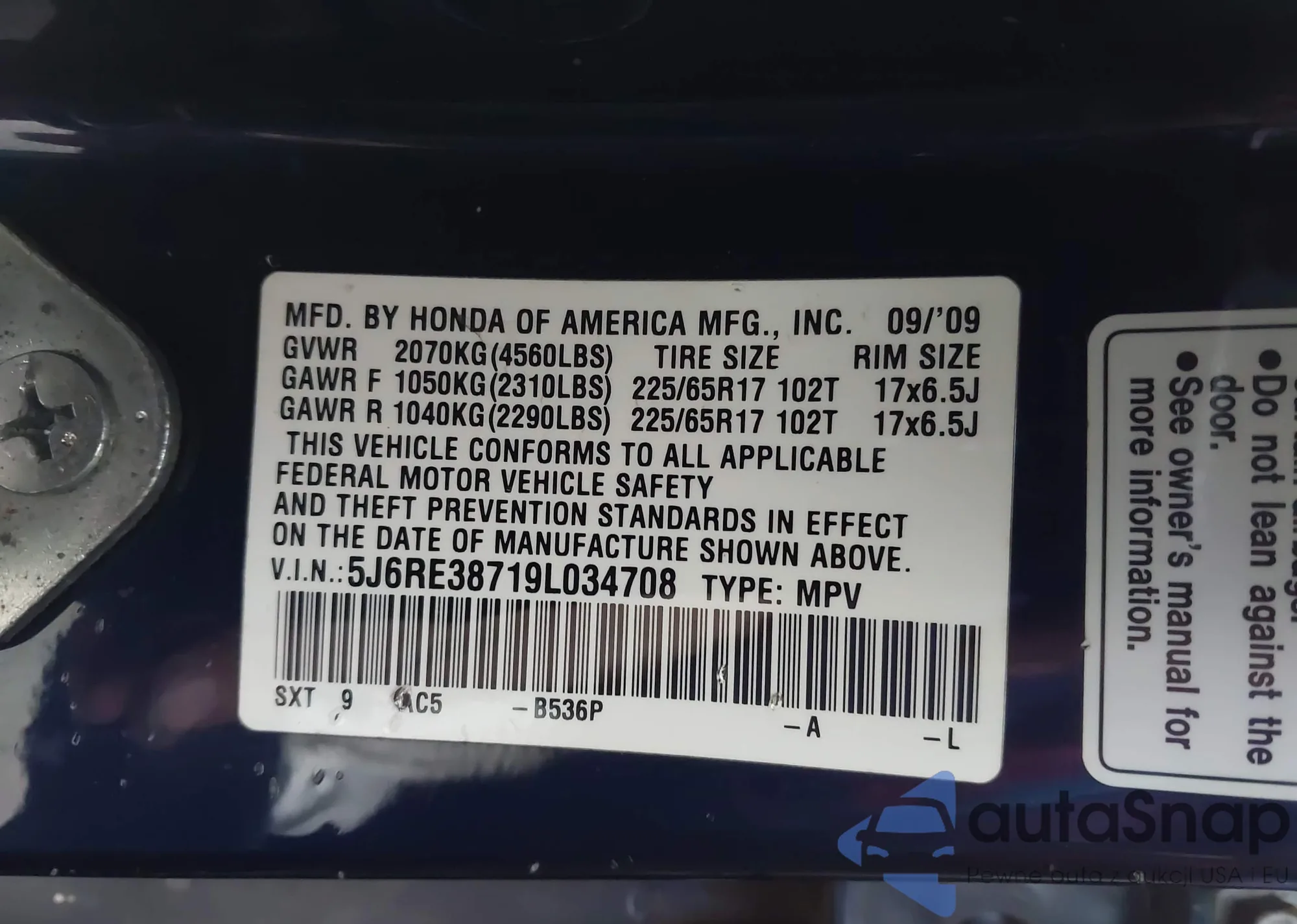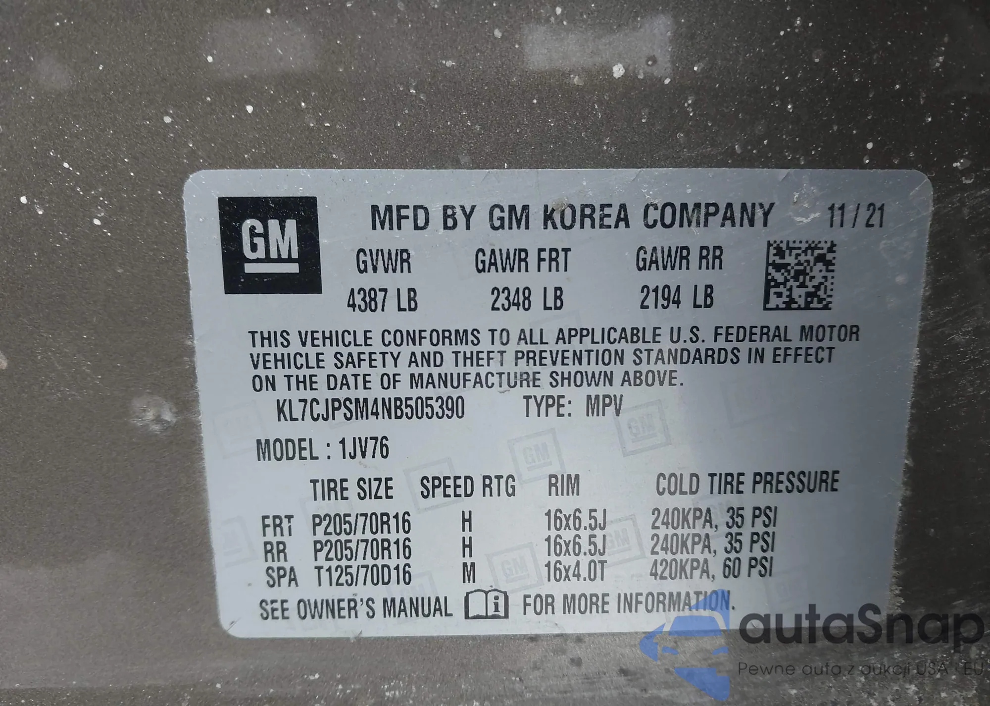 • VIN KL7CJPSM4NB505390