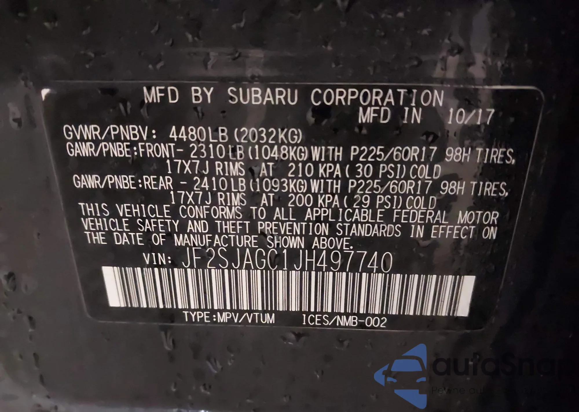 • VIN JF2SJAGC1JH497740