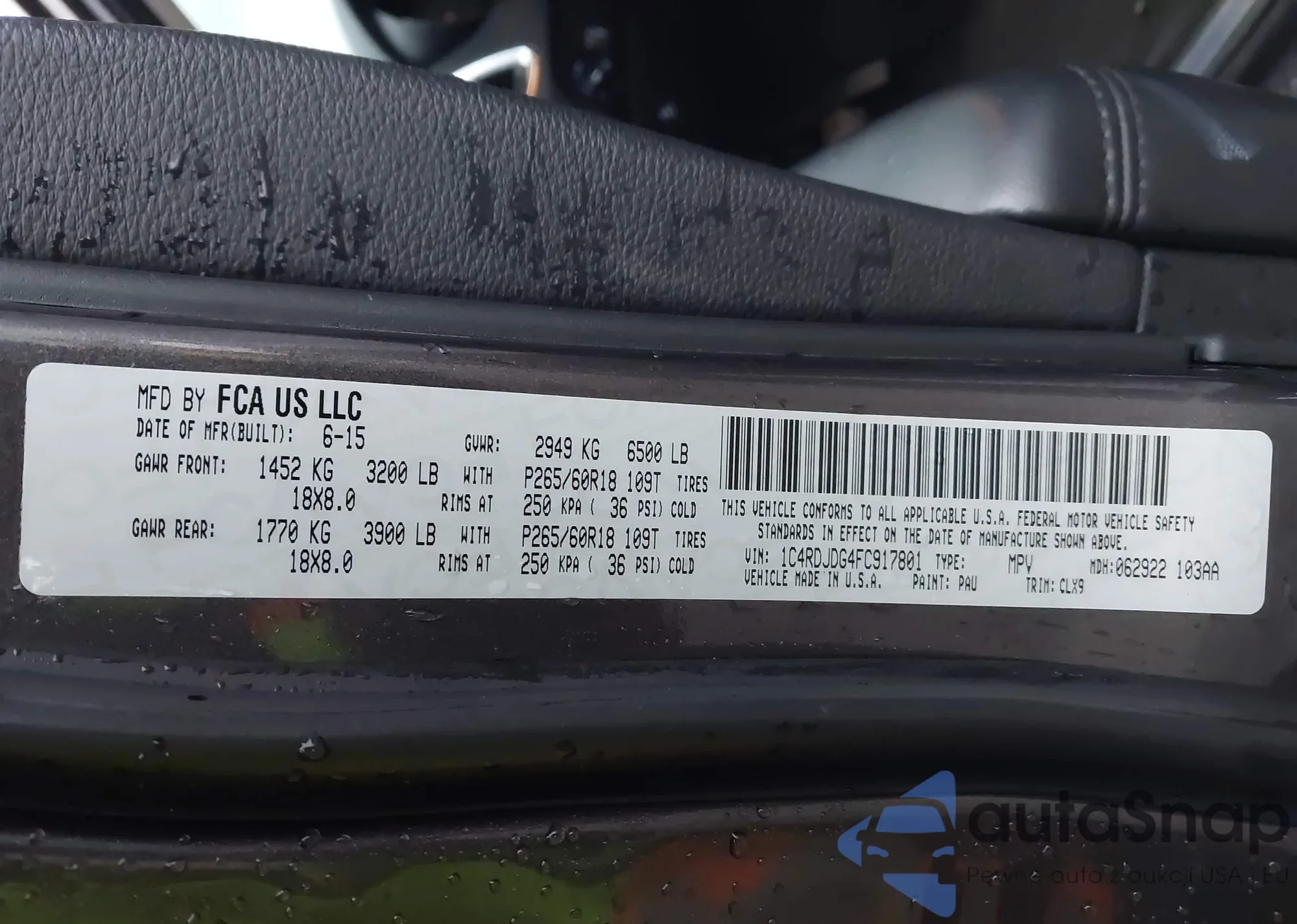 • VIN 1C4RDJDG4FC917801