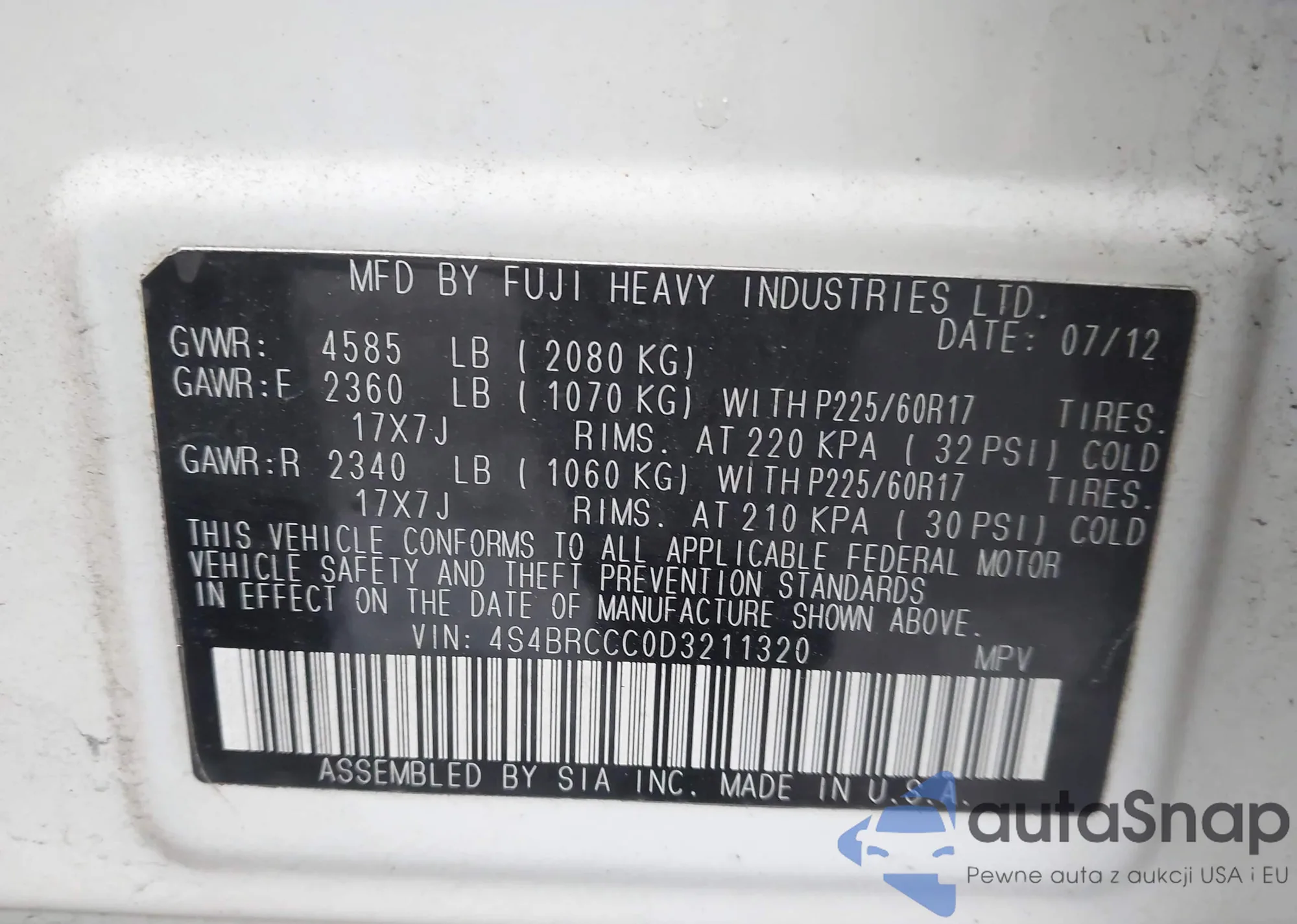 • VIN 4S4BRCCC0D3211320