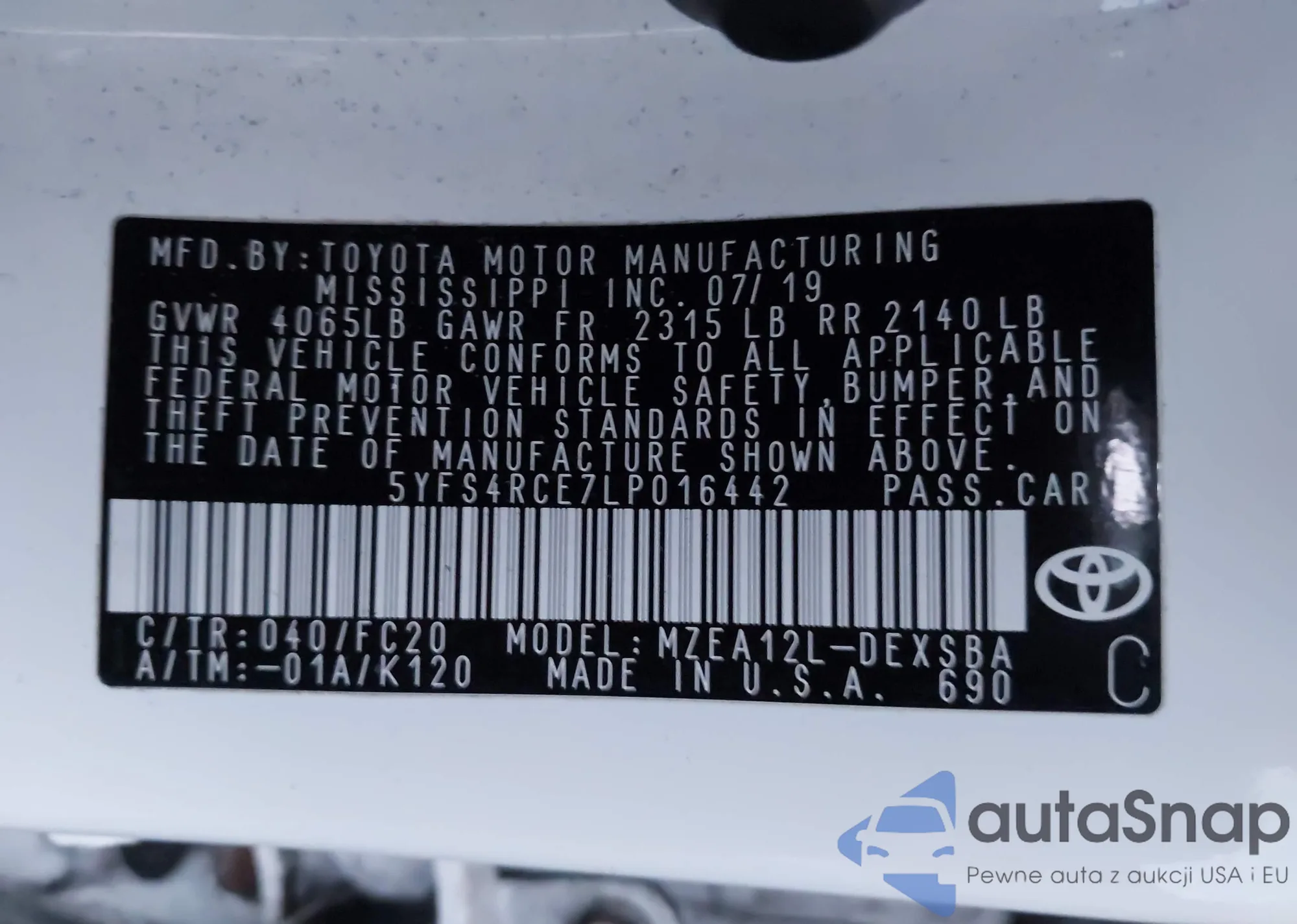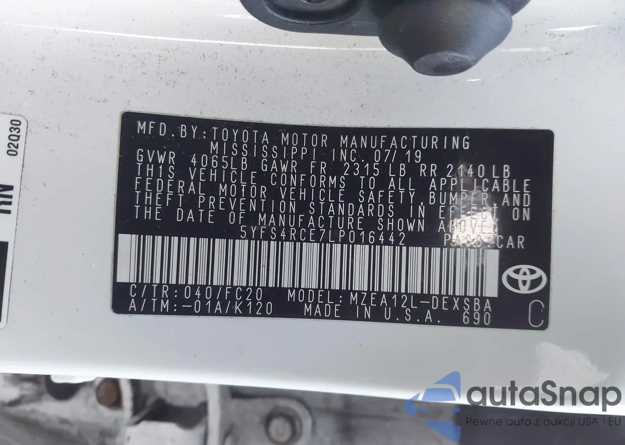 • VIN 5YFS4RCE7LP016442