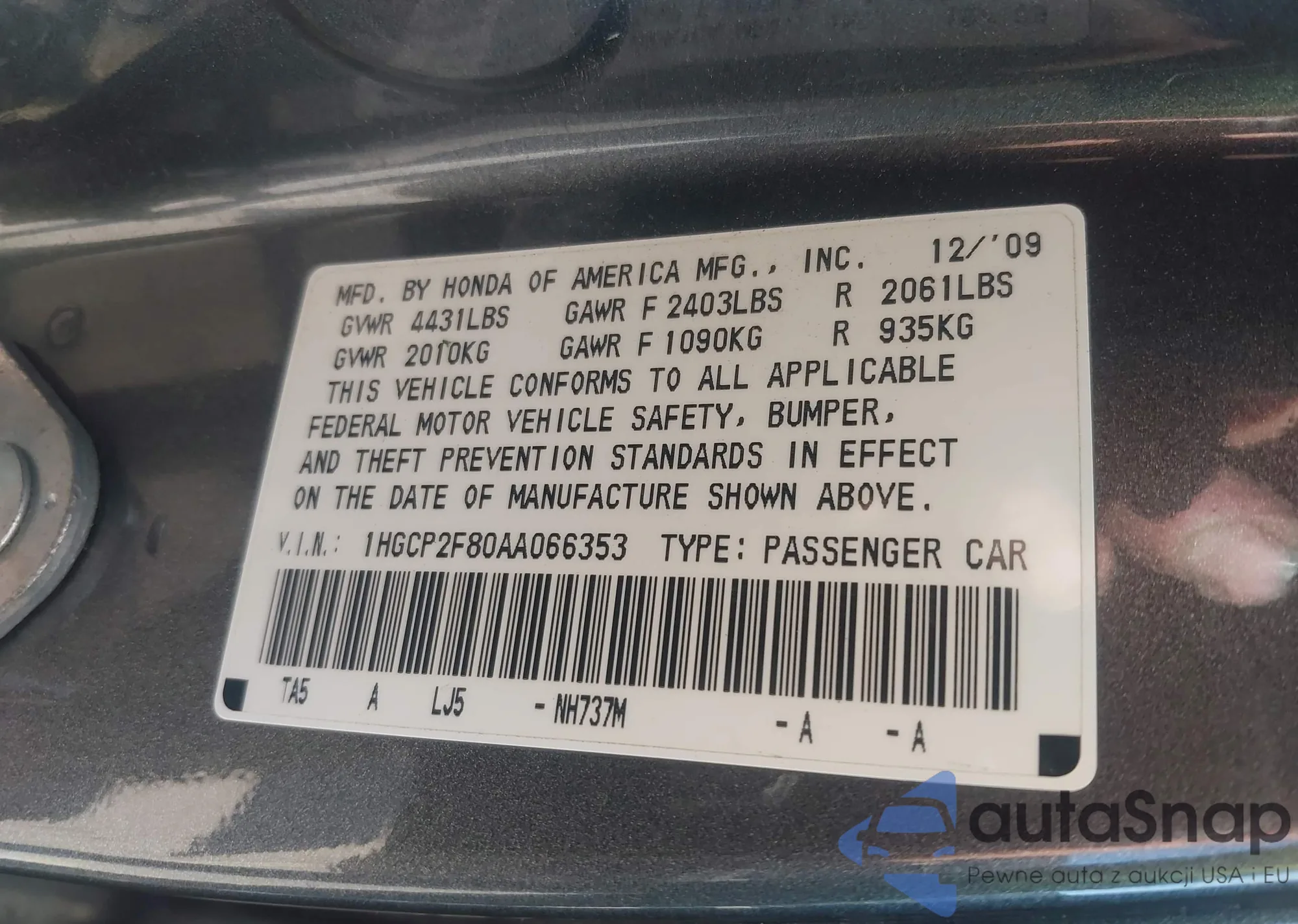 • VIN 5J6RE4H73BL045804