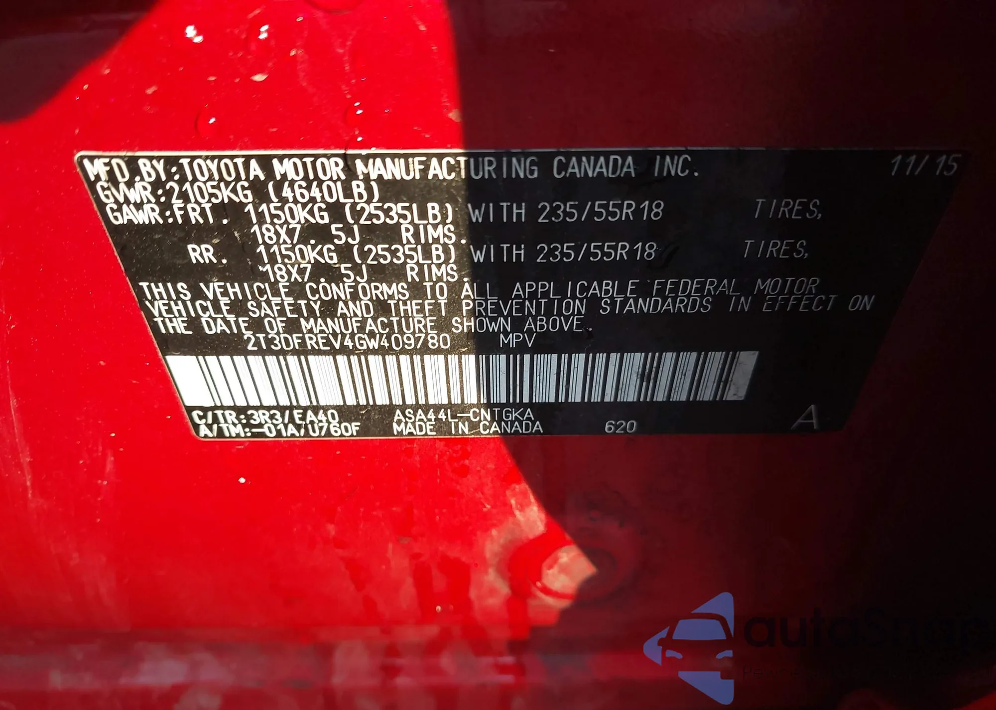 • VIN 2T3DFREV4GW409780