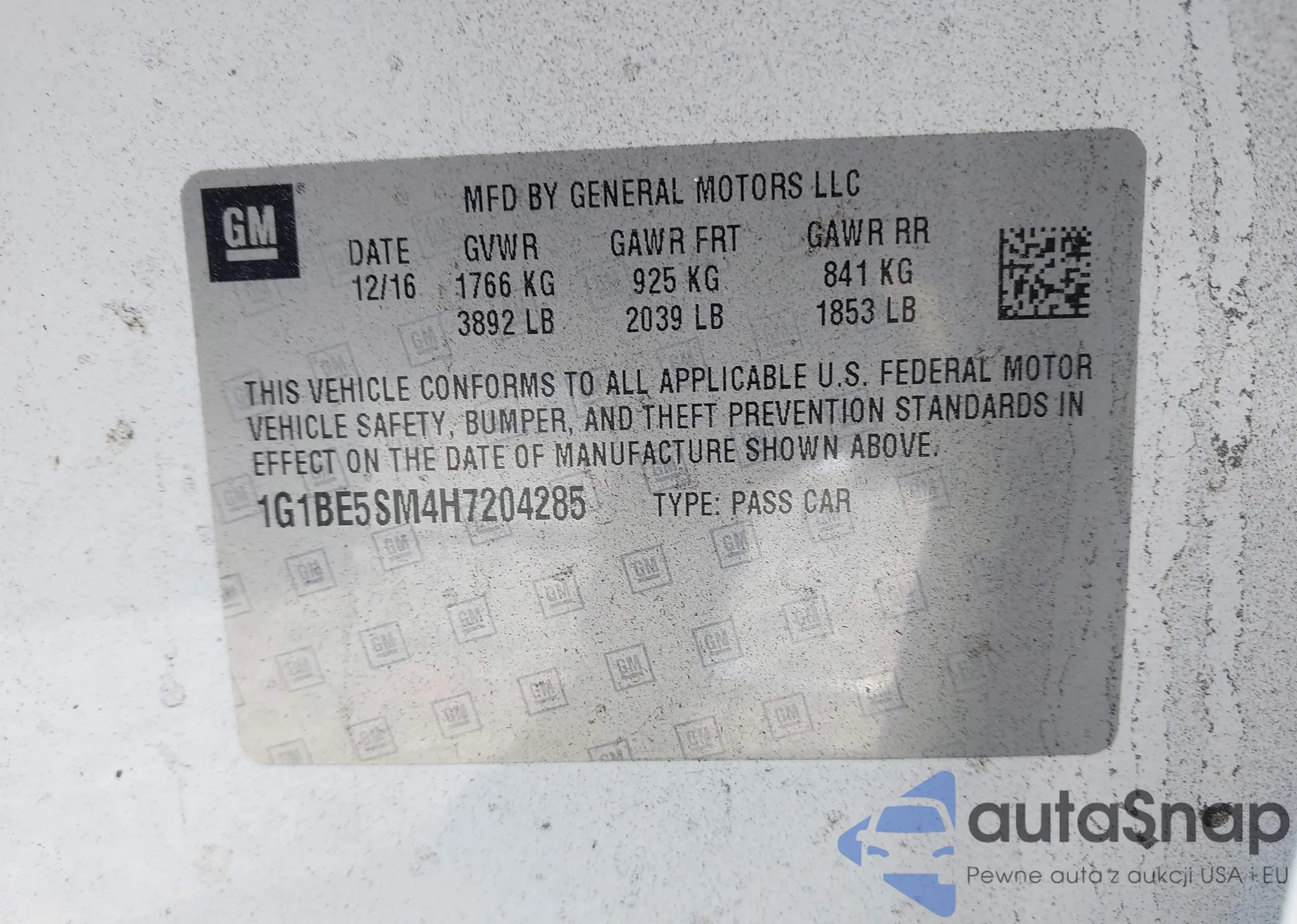 • VIN 1G1BE5SM4H7204285