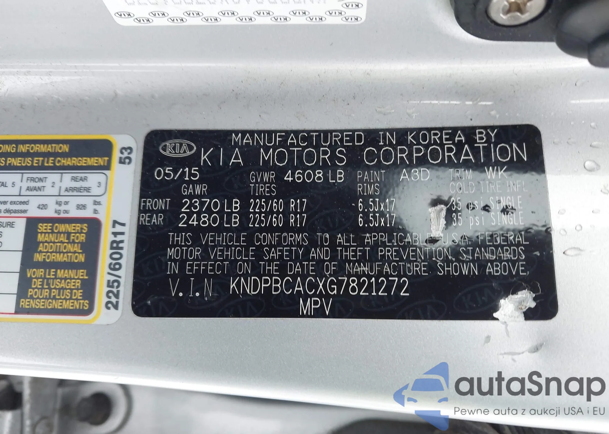 • VIN KNDPBCACXG7821272
